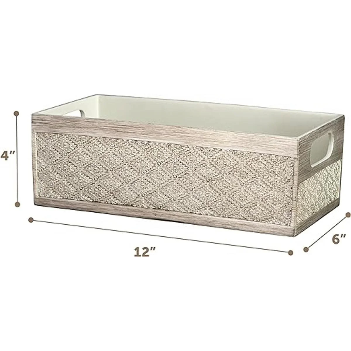 Medidas de la caja: Esta cesta de almacenamiento decorativa para accesorios de baño es del tamaño adecuado para la decoración de la cesta del tanque de inodoro, mide 4 pulgadas de alto x 6 pulgadas de ancho x 12 pulgadas de largo.