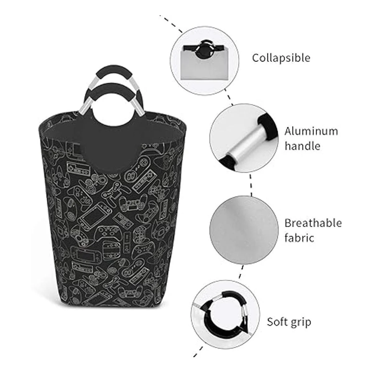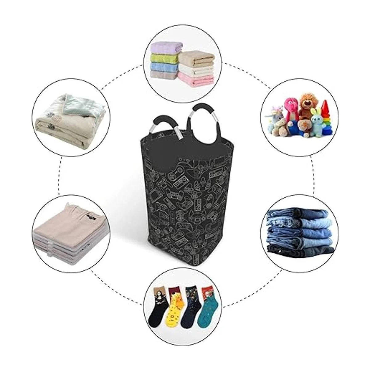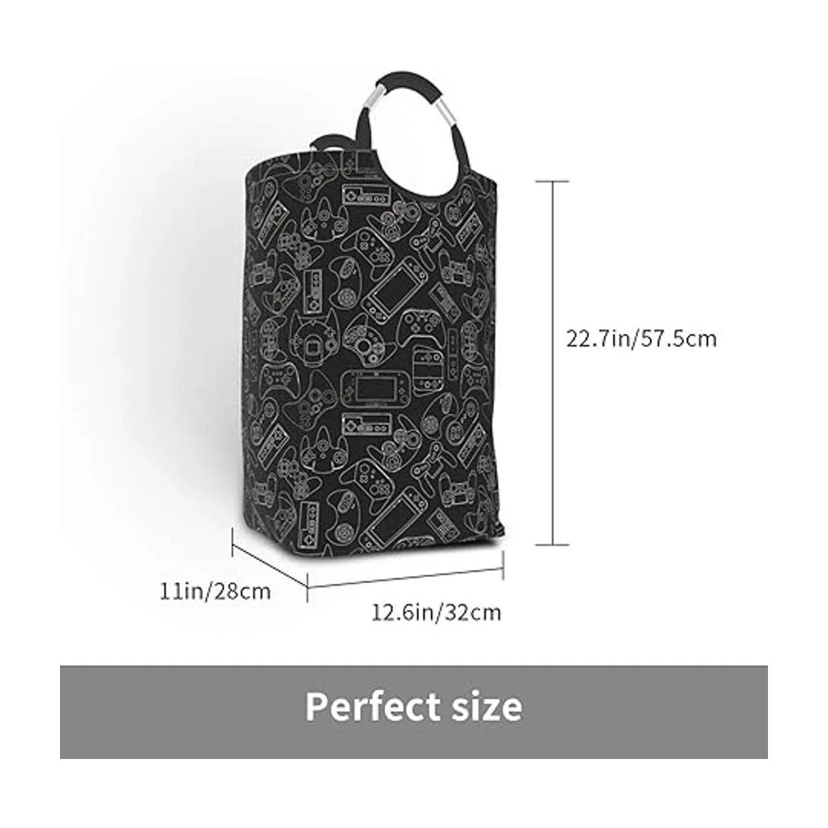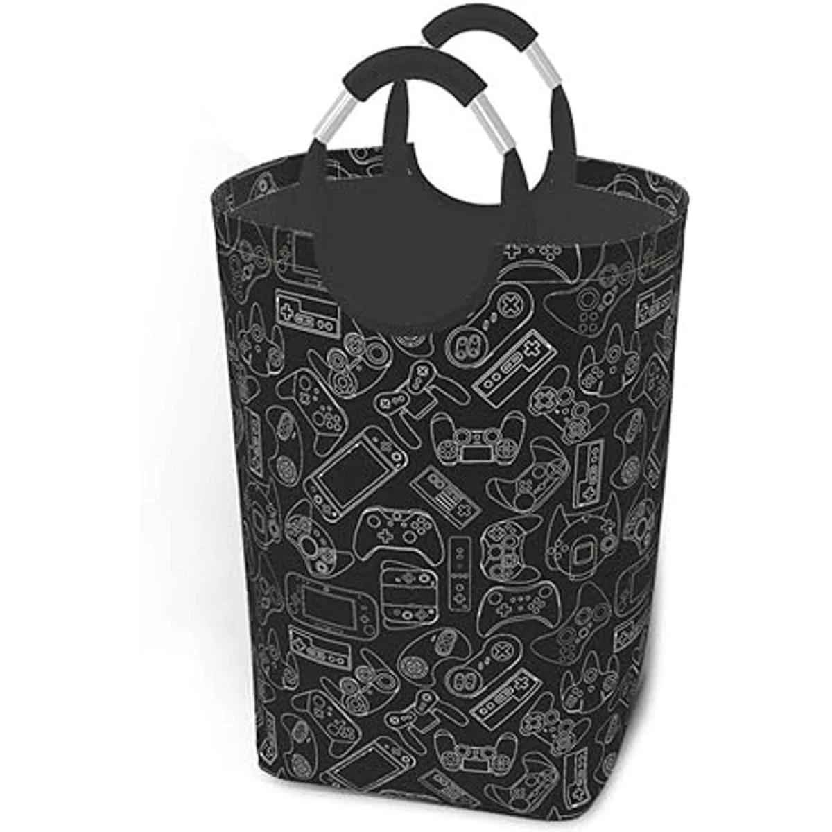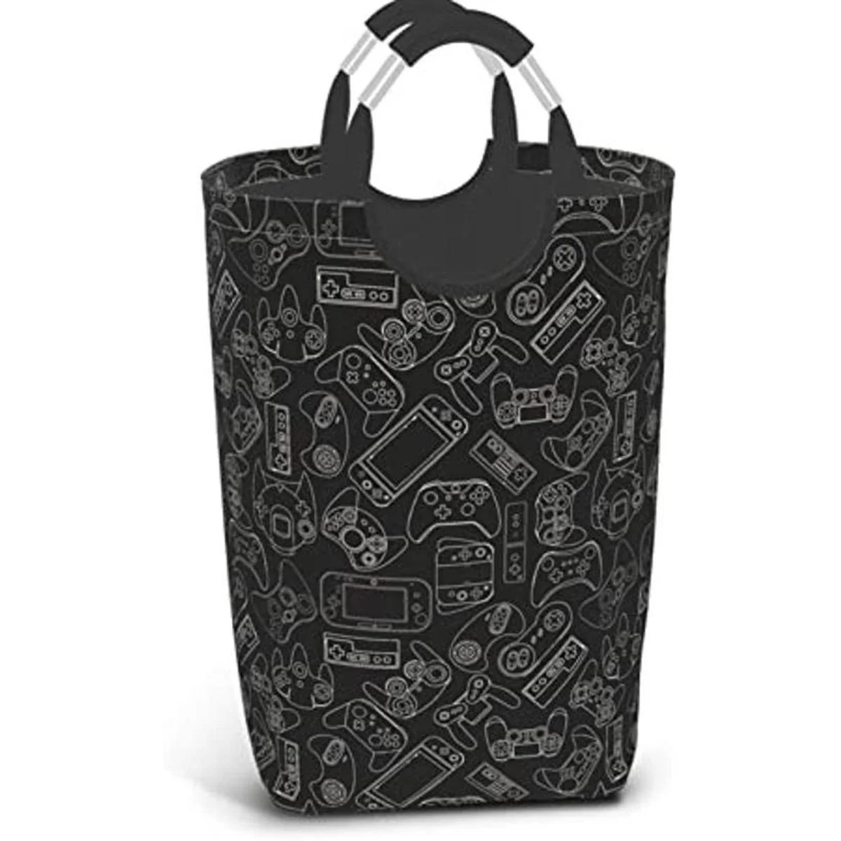 Duduho Cesta de lavandería negra con asas para control de videojuegos, organizador de almacenamiento de juguetes, cubo plegable, bolsa de ropa sucia para el hogar, baño, dormitorio