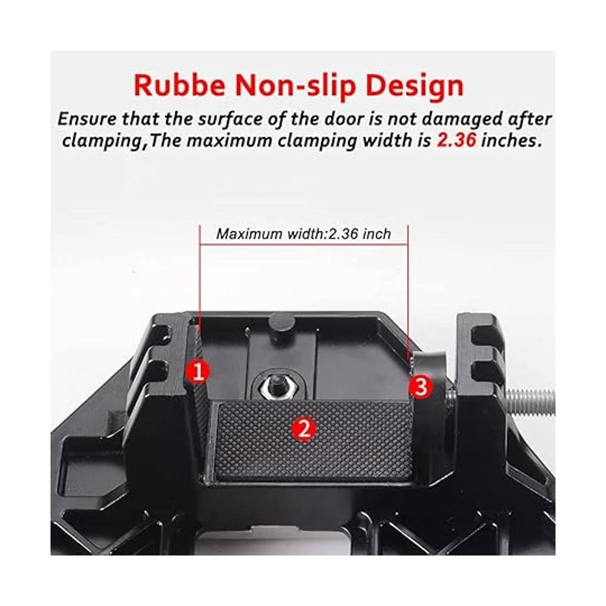 Abrazadera rápida y sujeción segura: no requiere herramientas, sujeción rápida: tornillos apretados a mano, sujeción rápida, trabajo eficiente. Abrazadera segura, no daña la fachada: la parte de sujeción adopta un diseño antideslizante de goma para garantizar que la superficie de la puerta de madera no se dañe. Es la elección de carpinteros profesionales. Abrazadera máxima: 2.4 in.