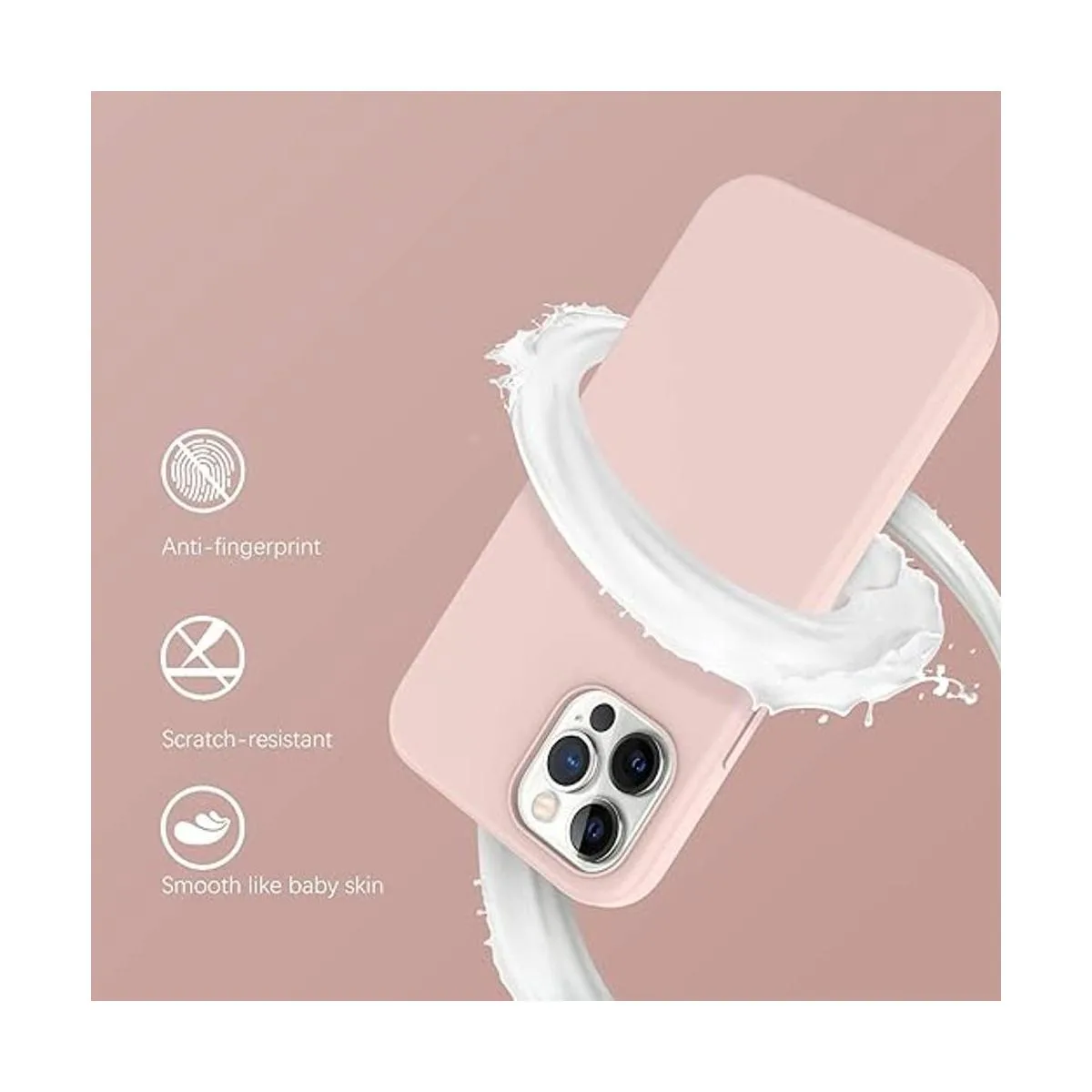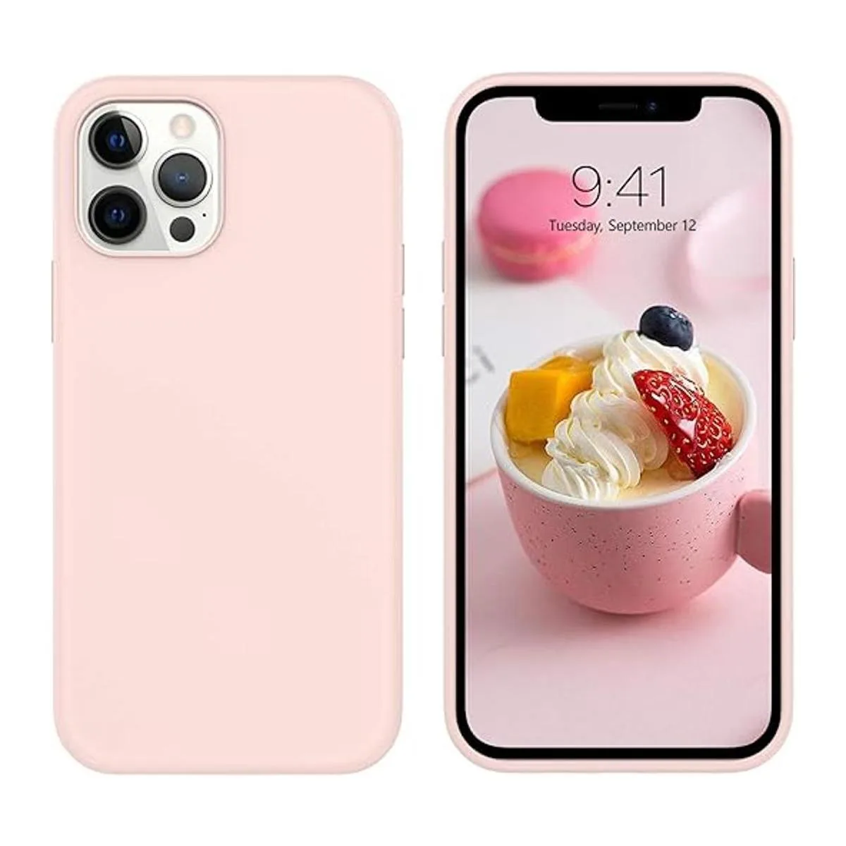 DUEDUE Funda para iPhone 12 Pro Max de 6.7 pulgadas, silicona líquida de goma de gel suave delgada con forro de tela de microfibra, funda protectora completa para iPhone 12 Pro Max, color rosa arena