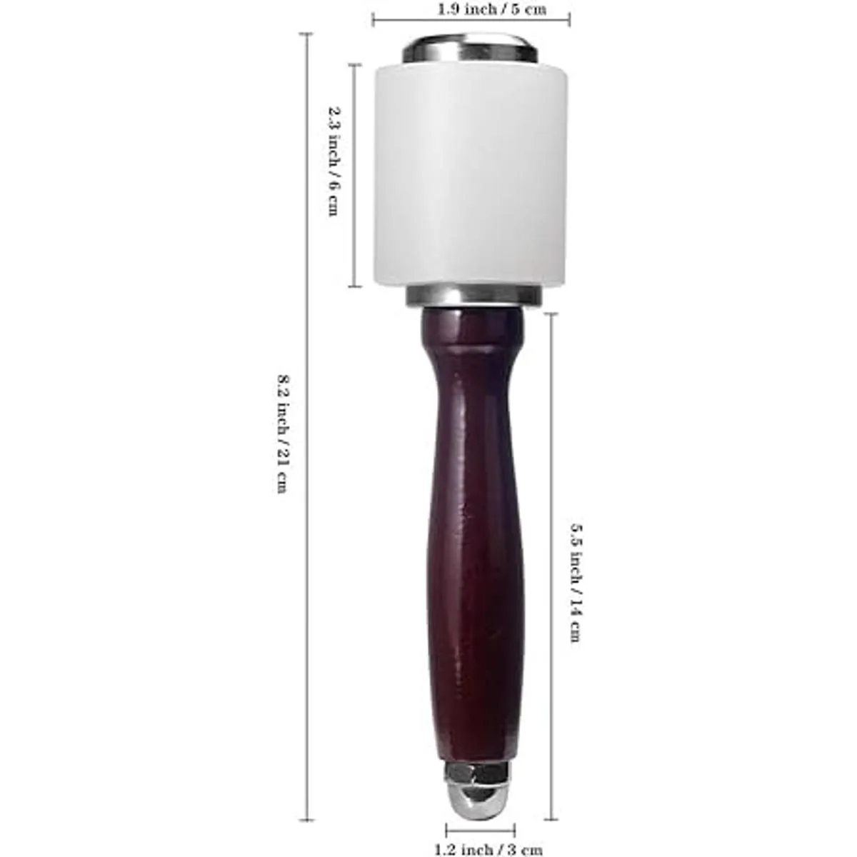 Martillo de cuero resistente Material: nailon madera; longitud: 8.3 in, diámetro del martillo: 2.0 in, se puede utilizar para golpear la herramienta de artesanía de cuero para imprimir tipos de figuras en la artesanía de cuero.