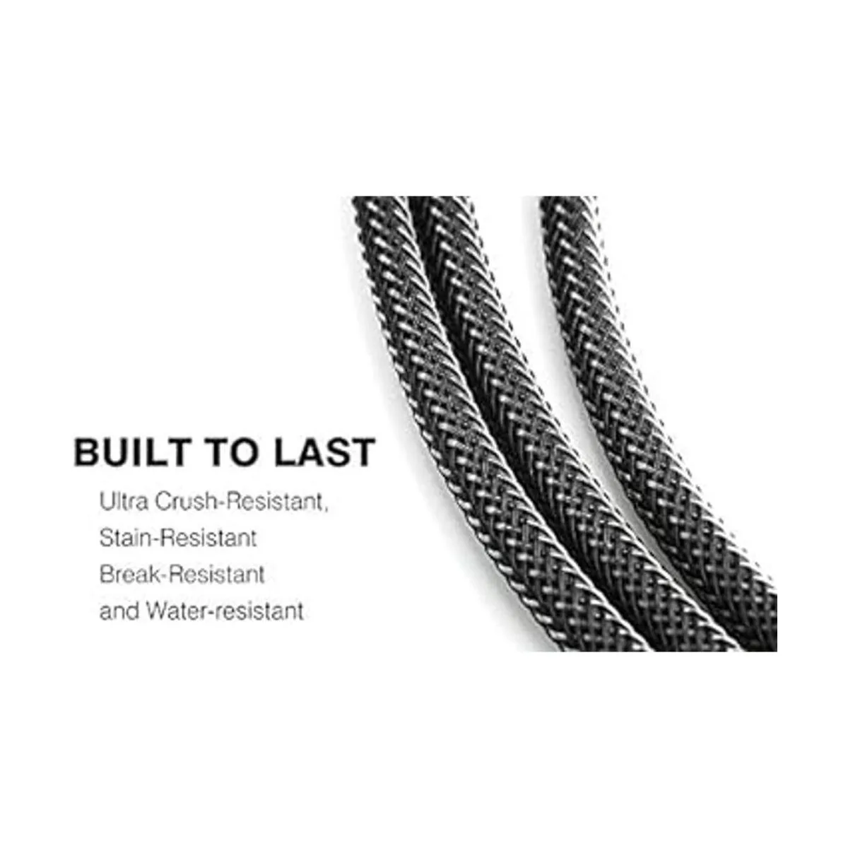 Exterior trenzado fuerte: crea un diseño duradero. Es nuestra primera vez que utilizamos materiales trenzados de alambre de pesca con cables de audio para una máxima protección. El resultado final es celebrar la maravilla; aspecto similar al cristal, diseño de agarre antideslizante, pero sensación suave al tacto. El gato en sí tiene aislamiento adicional que ayuda en la durabilidad del producto durante múltiples maniobras de enchufe y enchufe y mantiene la interferencia de otros dispositivos eléctricos en el coche al mínimo