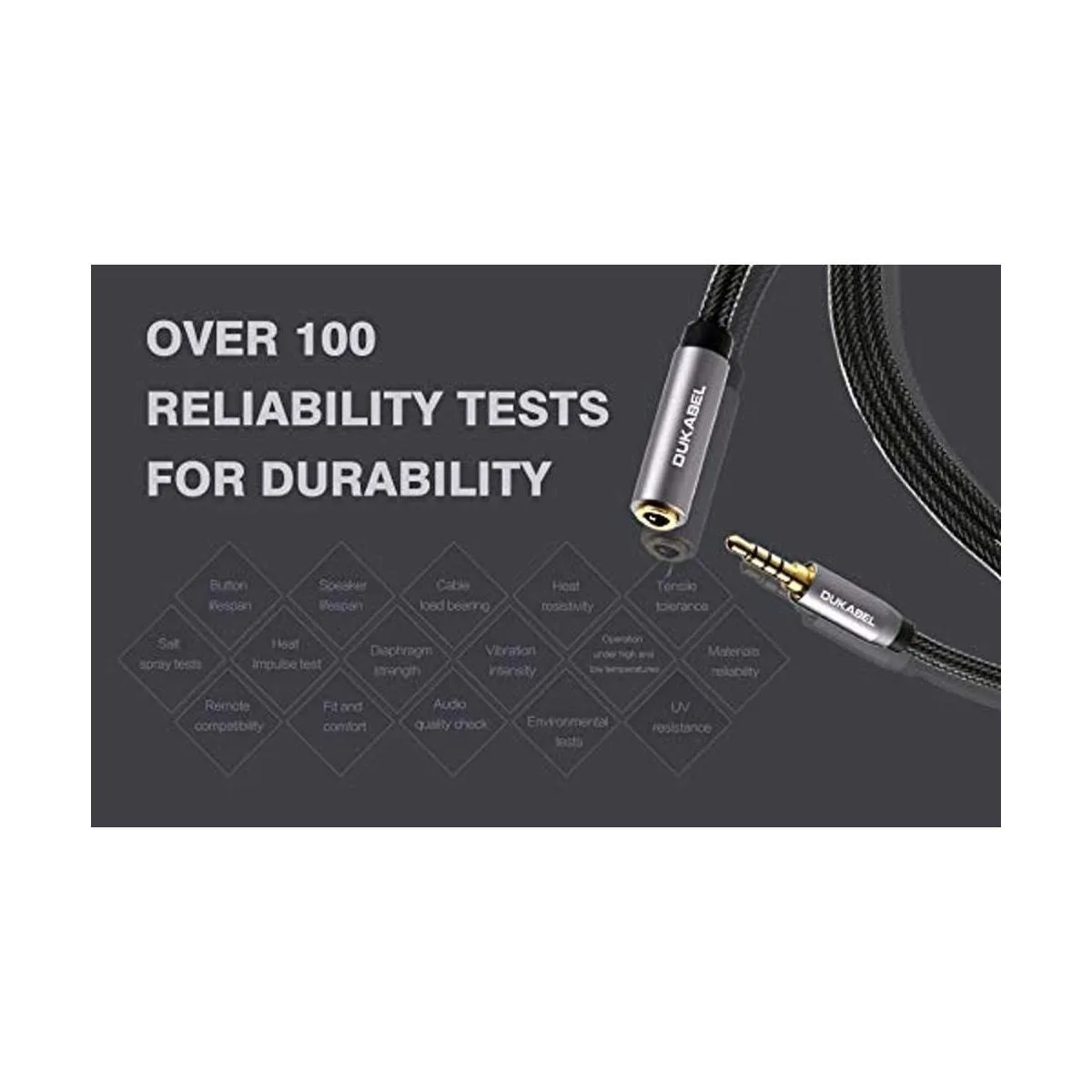 DUKABEL Top Series Extensión larga de 0.138 in 16 pies 16.4 ft, cable de audio TRRS de 4 polos macho a hembra, cable de audio de 0.138 in, cristal, nailon trenzado, chapado en oro de 24 quilates, 99.99 4N OFC
