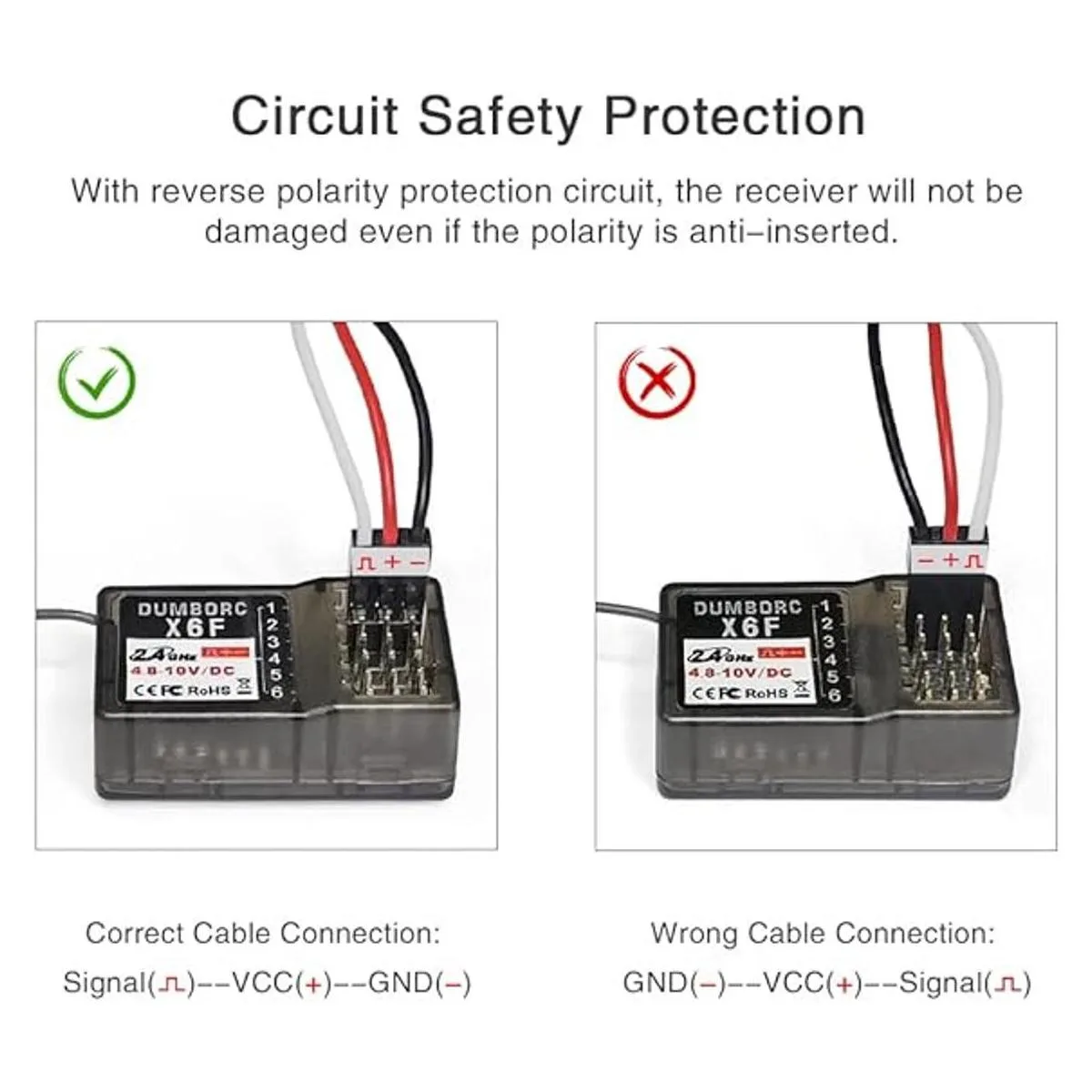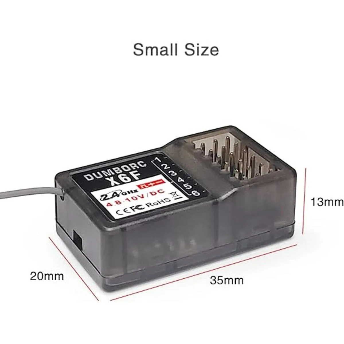 Receptor X6F de 6 canales solo compatible con transmisor DUMBORC X4/X5/X6, adecuado para vehículos RC y barcos a control remoto.