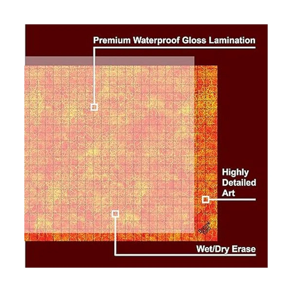 Dungeon Craft Battlemaps Hell Pack Juego de mesa Tapete de batalla para mazmorras y dragones Rejilla de 24 x 33 pulgadas Tapete laminado de doble cara borrado en húmedo y seco