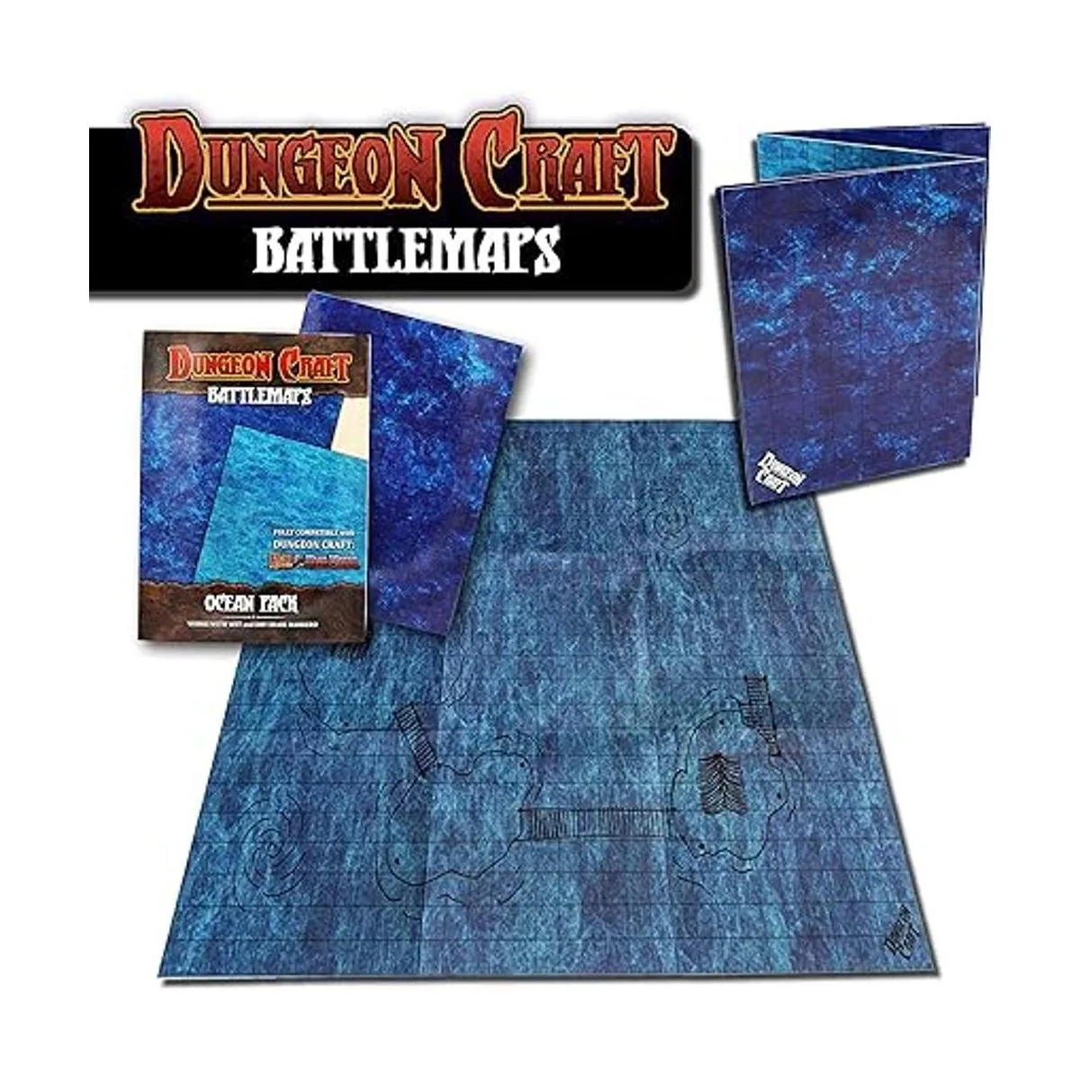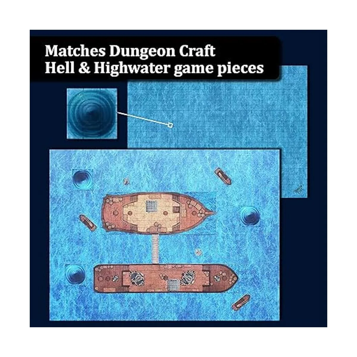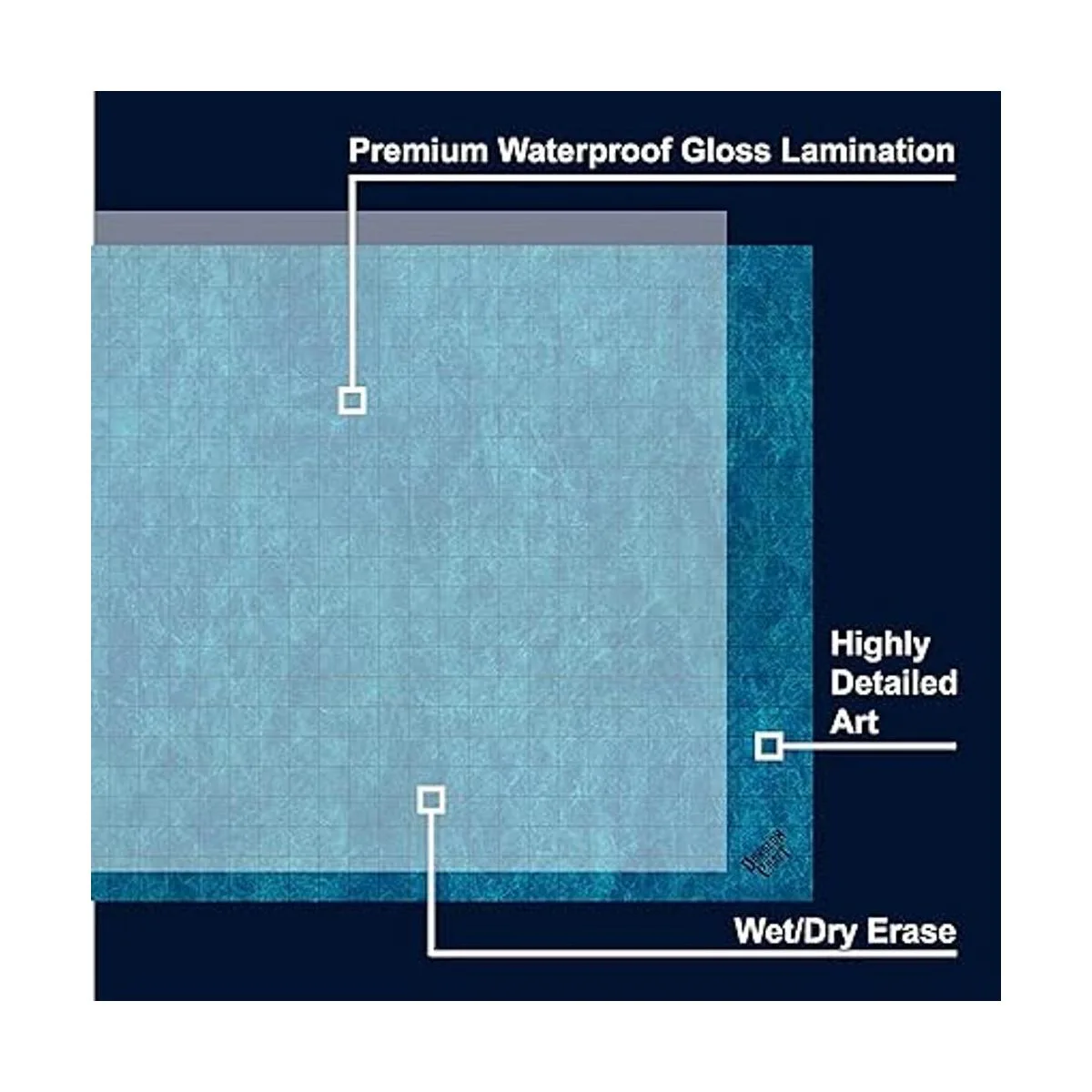 Dungeon Craft Battlemaps Ocean Pack Juego de mesa Tapete de batalla para mazmorras y dragones Rejilla de 24 x 33 pulgadas Tapete laminado de doble cara borrado en húmedo y seco