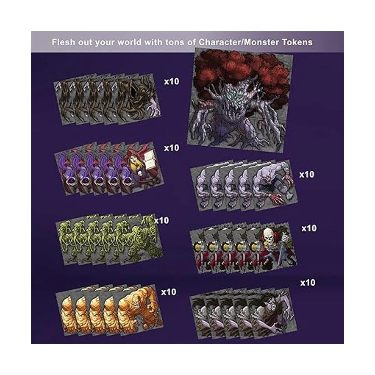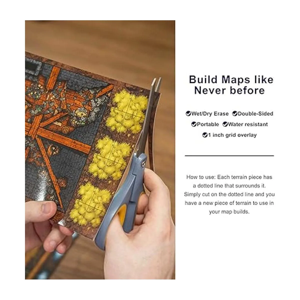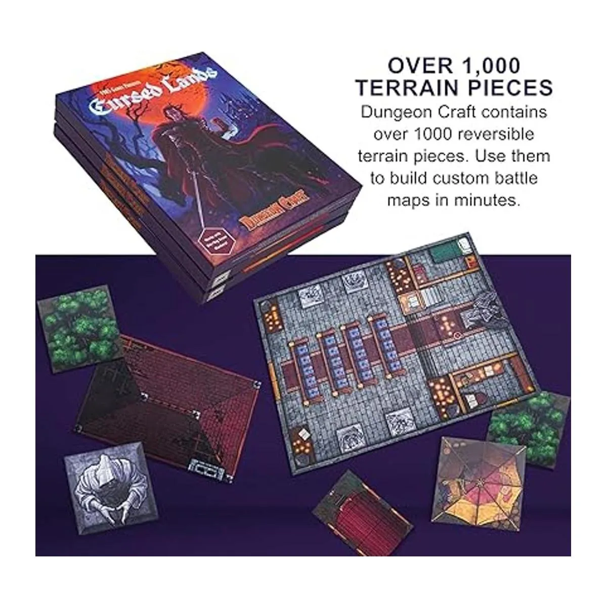 Dungeon Craft Juego de mesa Cursed Lands Juego de mesa de más de 1000 azulejos de terreno para mapas de batalla de mazmorras, borrado en seco y húmedo de doble cara, compatible con DD