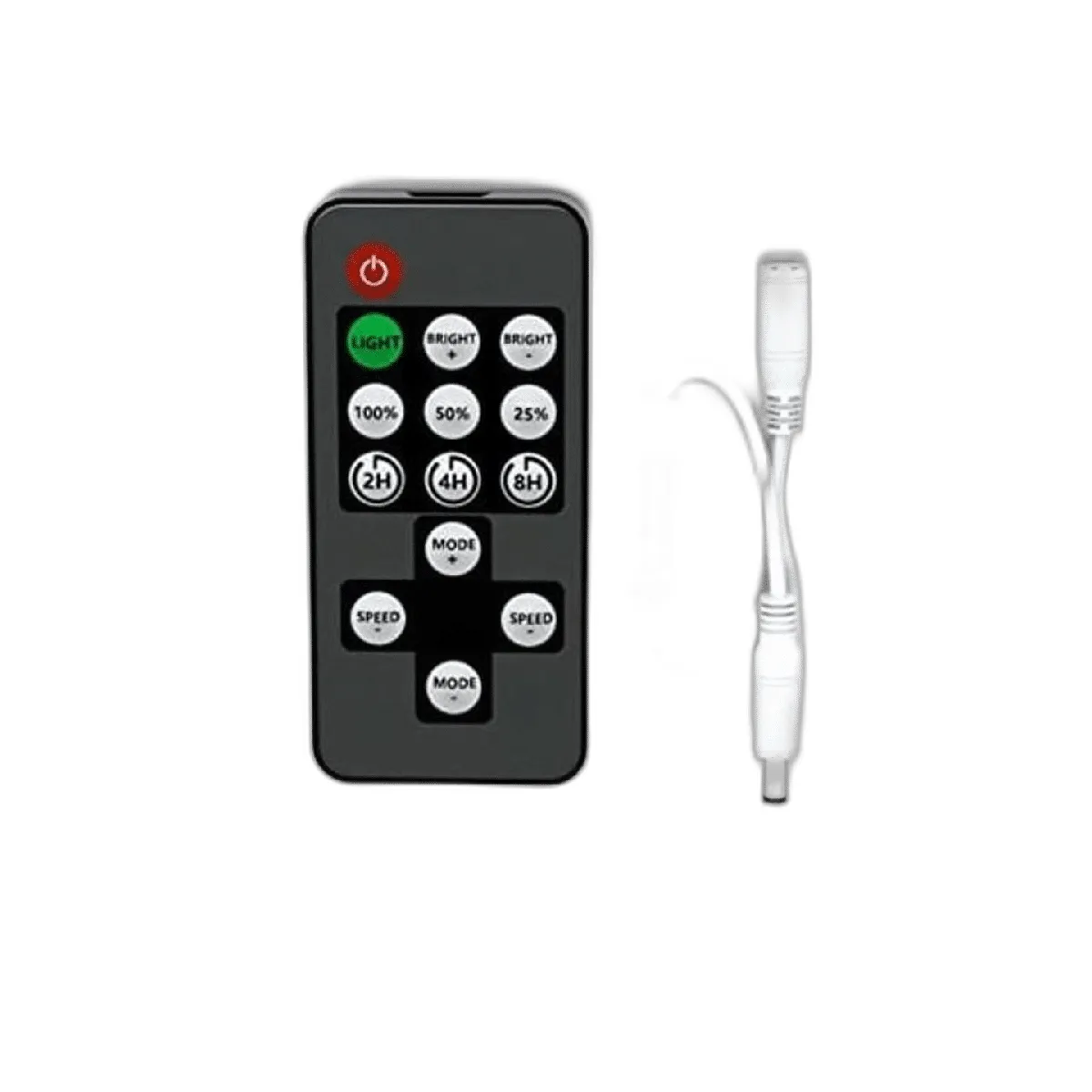 Con control remoto de 14 teclas: el control remoto LED puede ajustar el tiempo, la velocidad y el brillo de la tira LED. Regulador de 10 niveles; 8 efectos dinámicos; tres períodos de tiempo 2H/4H/8H, cierre automático de la hora de llegada. Tu mejor opción para controlar las tiras de luces LED de un solo color.
