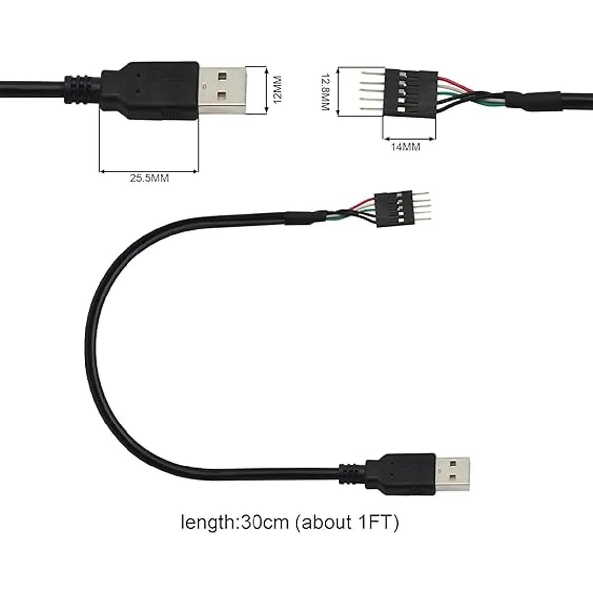Dupont Cable adaptador de placa base de 5 pines a USB A, IDC de 5 pines a USB 2.0 macho 2 unidades