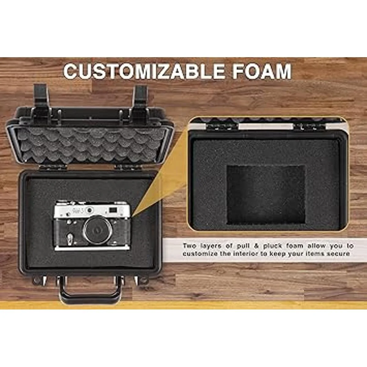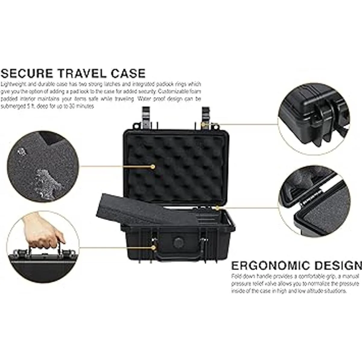 Duradero: más eficaz que la mayoría de las fundas. Esta funda a prueba de aplastamientos con interior de espuma acolchada es perfecta para llevar accesorios. Esta funda a prueba de golpes absorbe los impactos y protege su contenido. Ideal para transportar en coches, trenes o en un avión. Los cierres resistentes garantizan que tus artículos permanezcan seguros dentro de la funda. Puede adaptarse a cámaras, lentes, portátiles pequeños y otros objetos de valor para el transporte.