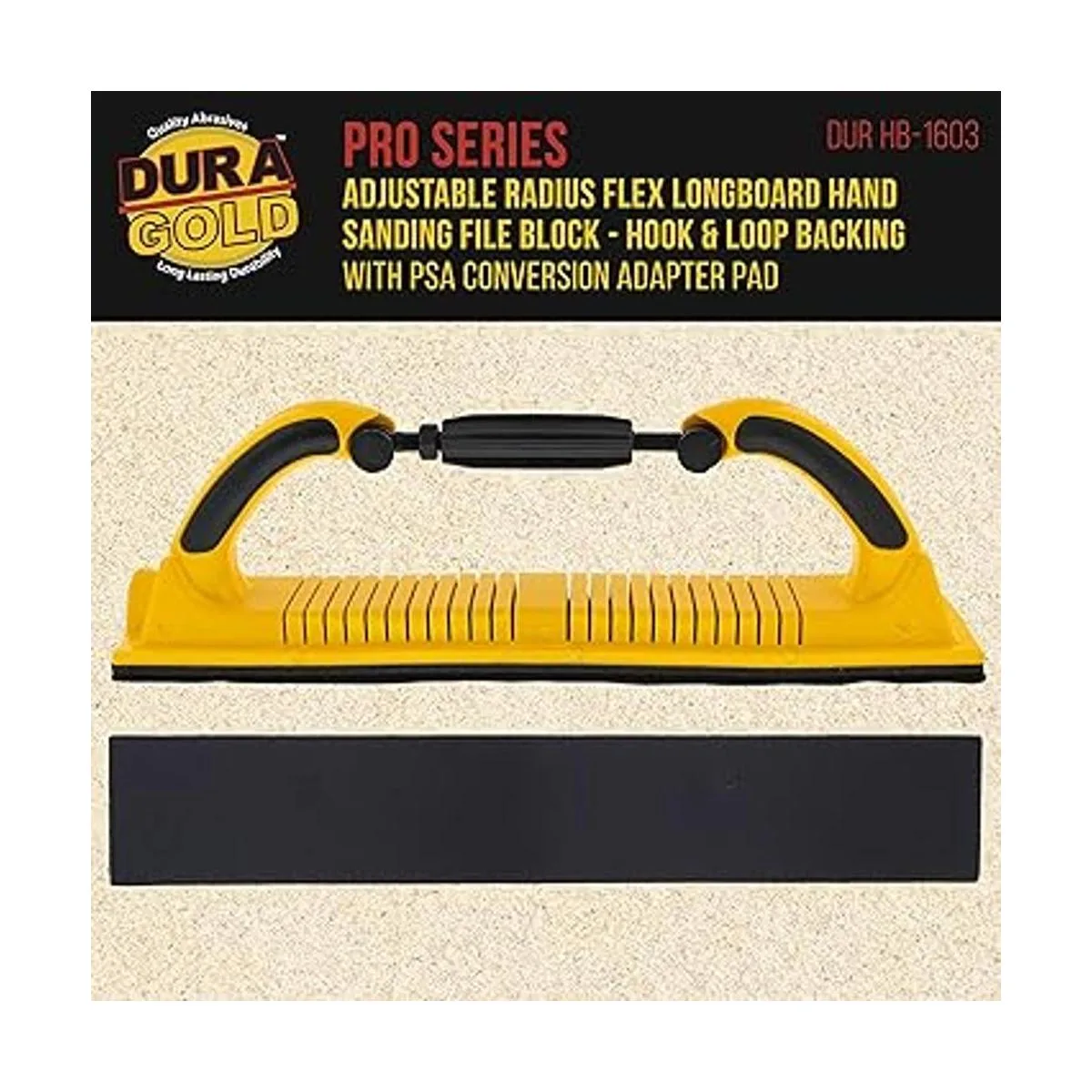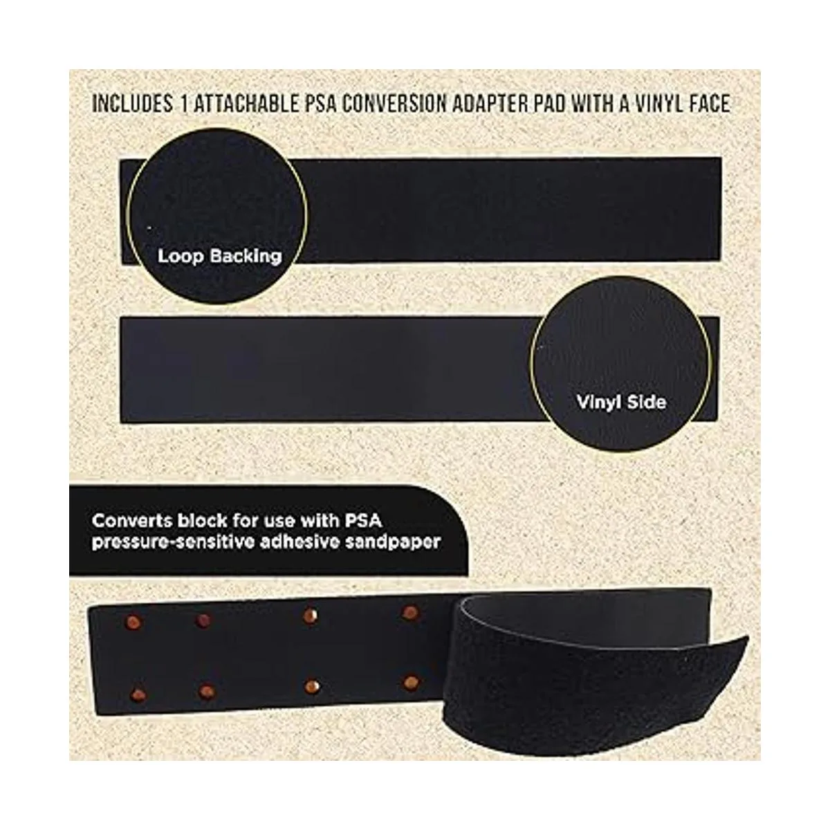 DuraGold Pro Series Bloque de archivos de lija a mano con soporte de gancho y bucle y almohadilla de adaptador de conversión de respaldo PSA, rollos continuos o hoja de papel de lija de 1612 x 234