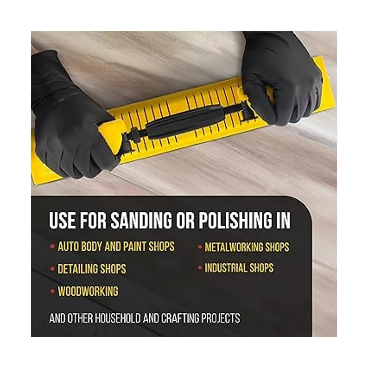 Un versátil bloque de lijado a mano para uso de lijado o pulido en talleres de carrocería y pintura, tiendas de detalles, fabricación de muebles de madera, talleres de metal, tiendas industriales, yeso y otros proyectos domésticos y de manualidades.