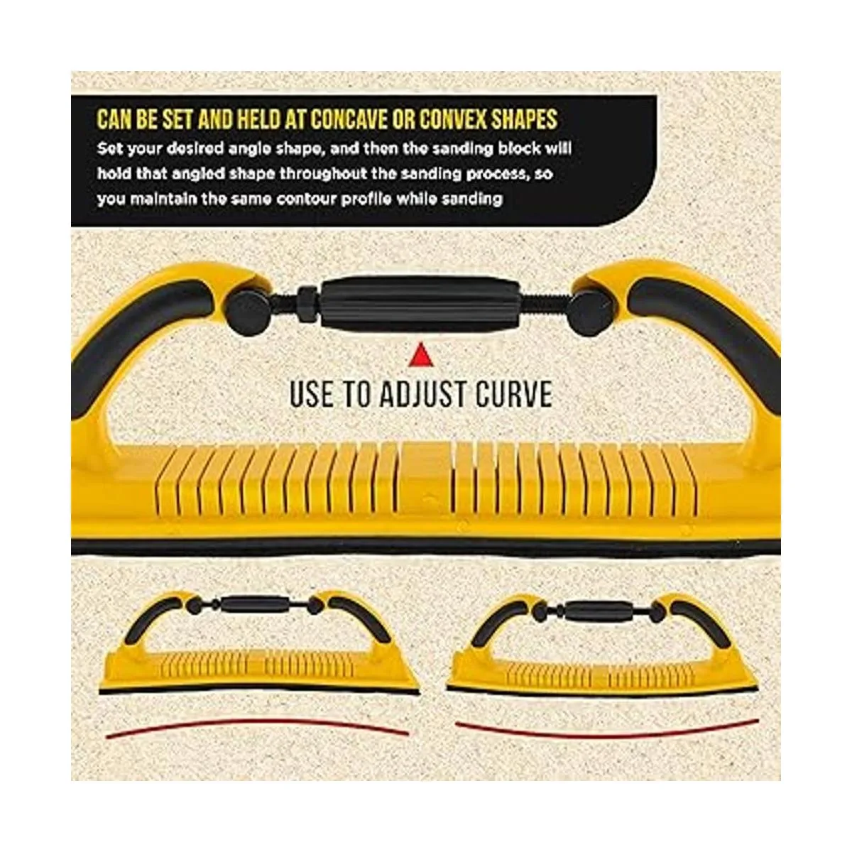 Un bloque de lijado ergonómico, duradero y ajustable que se puede ajustar y sostener en formas cóncavas o convexas. Ajusta la forma de ángulo deseada, y luego el bloque de lijado mantendrá esa forma angular durante todo el proceso de lijado, por lo que mantiene el mismo perfil de contorno mientras lijas. El aspecto de los bloques y la base de bucle tiene agujeros para permitir un lijado sin polvo.