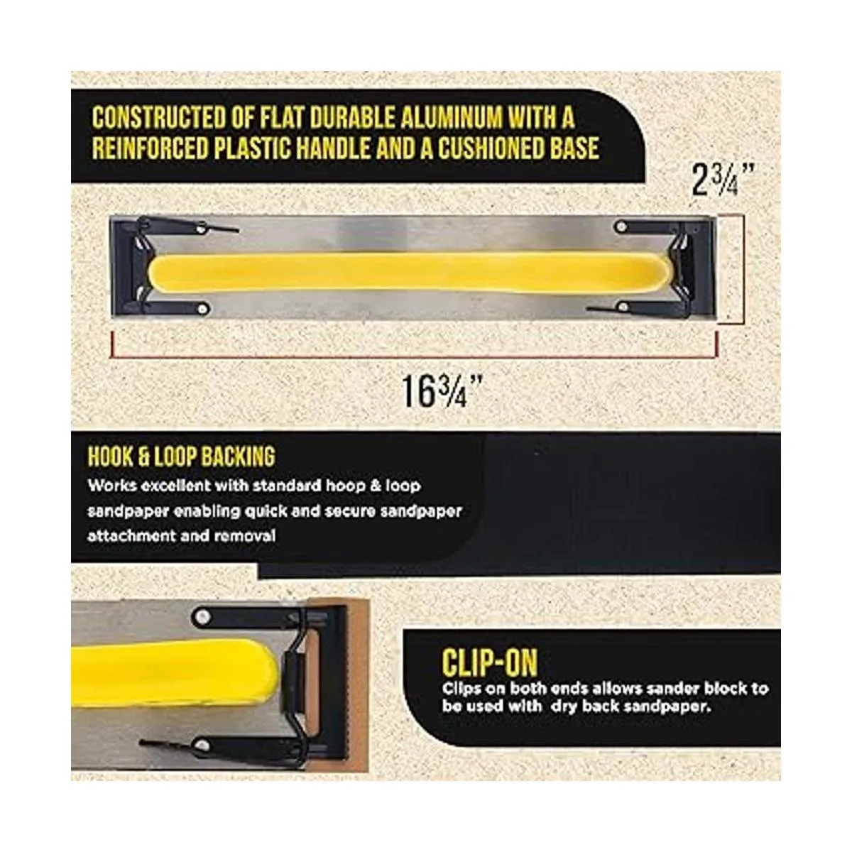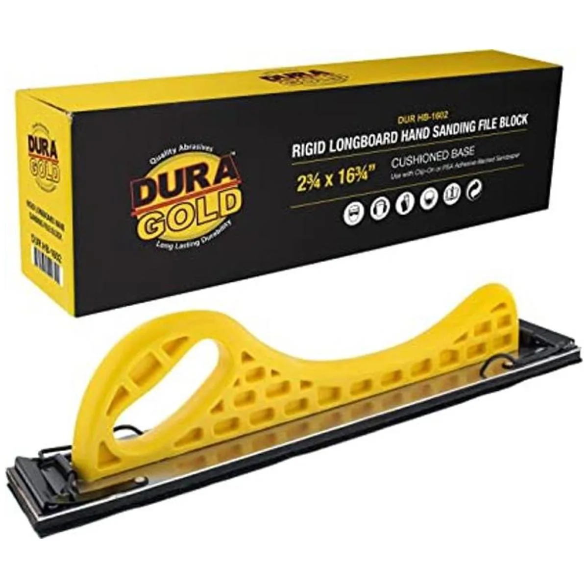 DuraGold Pro Series Longboard Bloque de lijadora de archivos de lijado a mano, respaldo de gancho y bucle y almohadilla de adaptador de conversión de respaldo PSA, papel de lija con clip, rollos continuos, hojas PSA, pintura de arena para carpintería