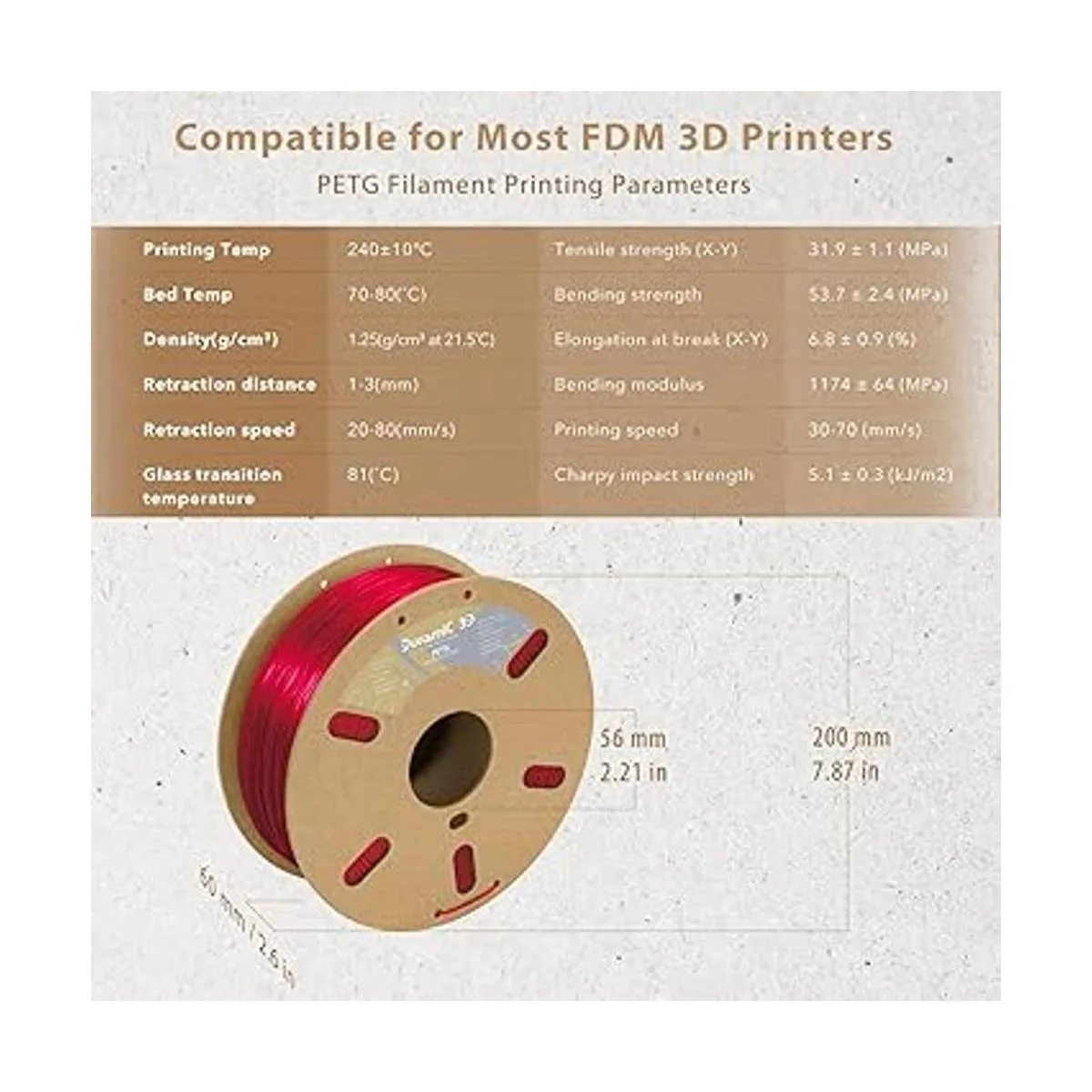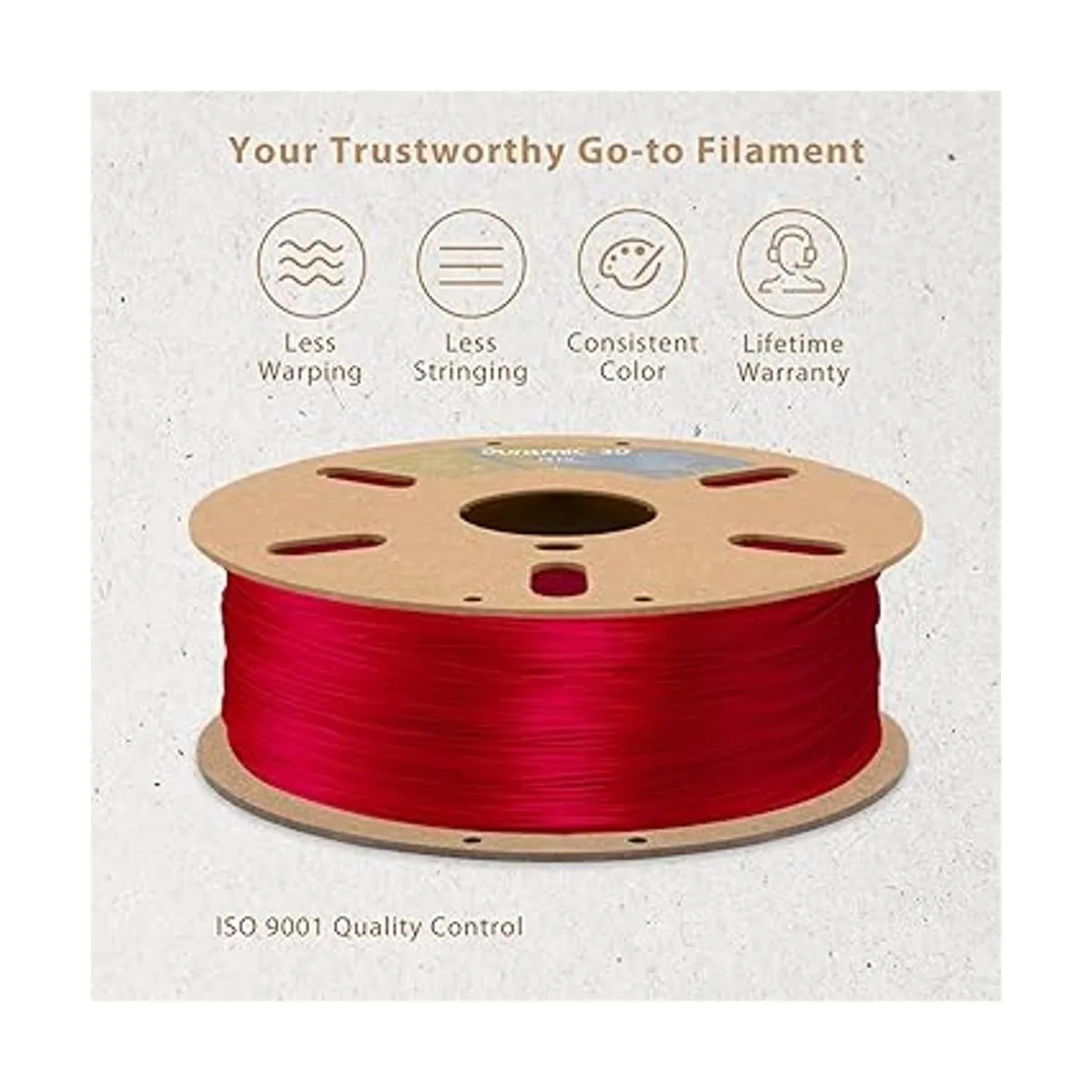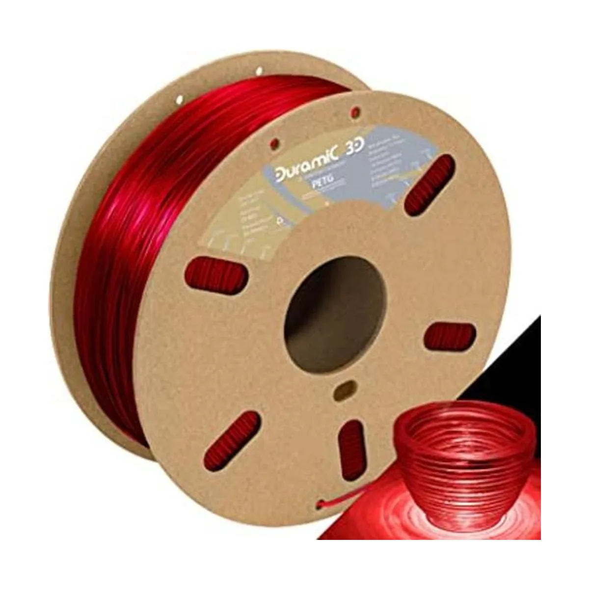 DURAMIC 3D Filamento PETG de 0.05 pulgadas, rojo translúcido, filamento de impresión 3D, carrete de 2.2 lbs 2.2 libras, filamento rojo translúcido de 0.069 in, precisión dimensional 0.002 in, no se enreda, sin obstrucciones, sin cuerdas