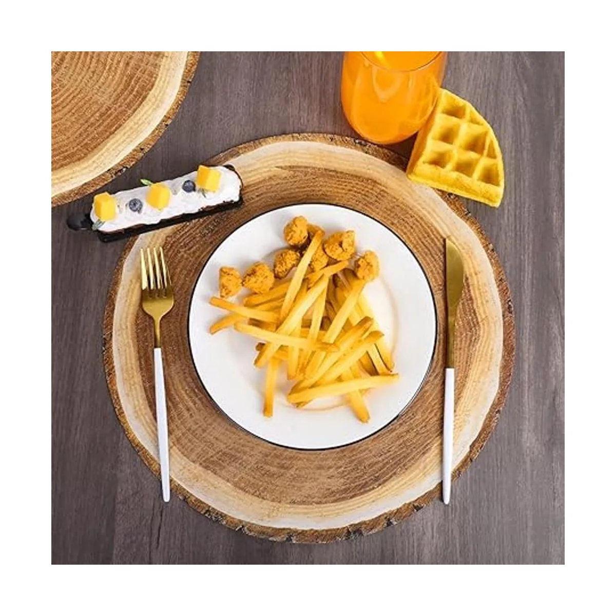 El paquete incluye: recibirás 60 paquetes de manteles individuales de papel de rebanada de madera, suficientes para satisfacer tus necesidades de uso diario; estos manteles individuales de papel de rebanada de madera mejorarán en gran medida la decoración de tu mesa de comedor y dejarán una profunda impresión en tus invitados