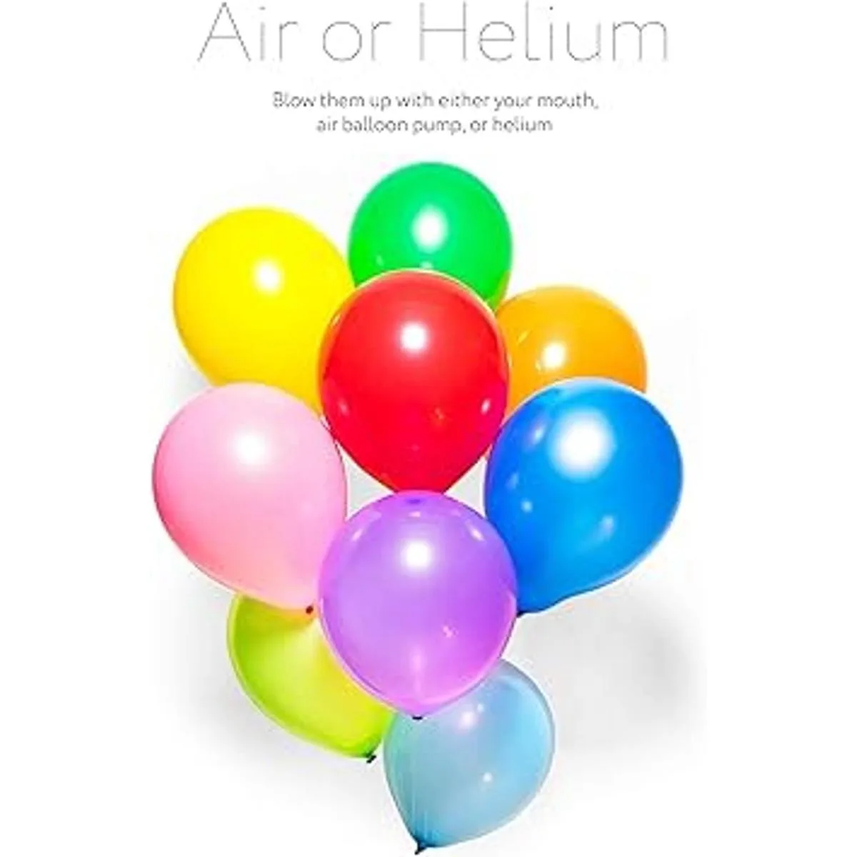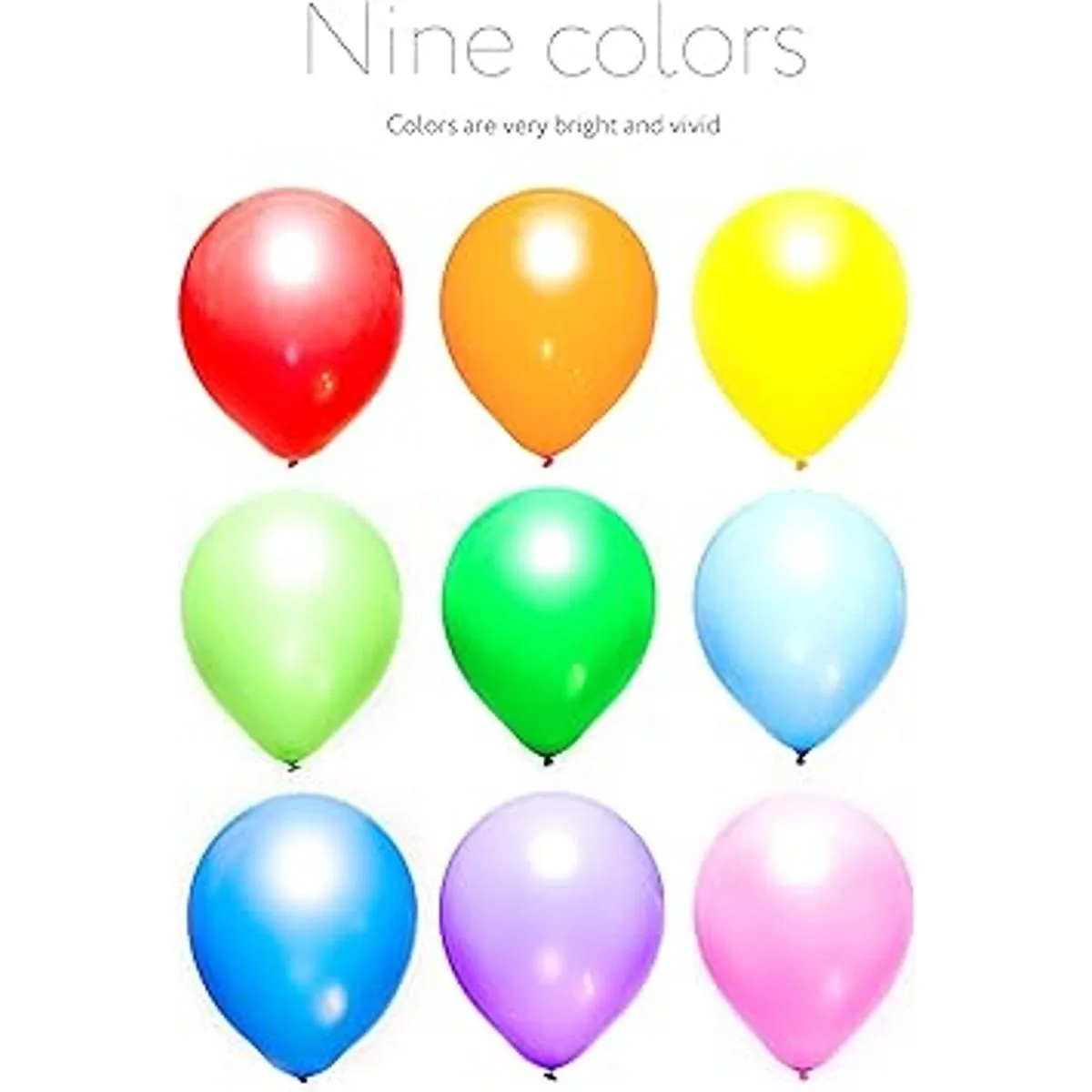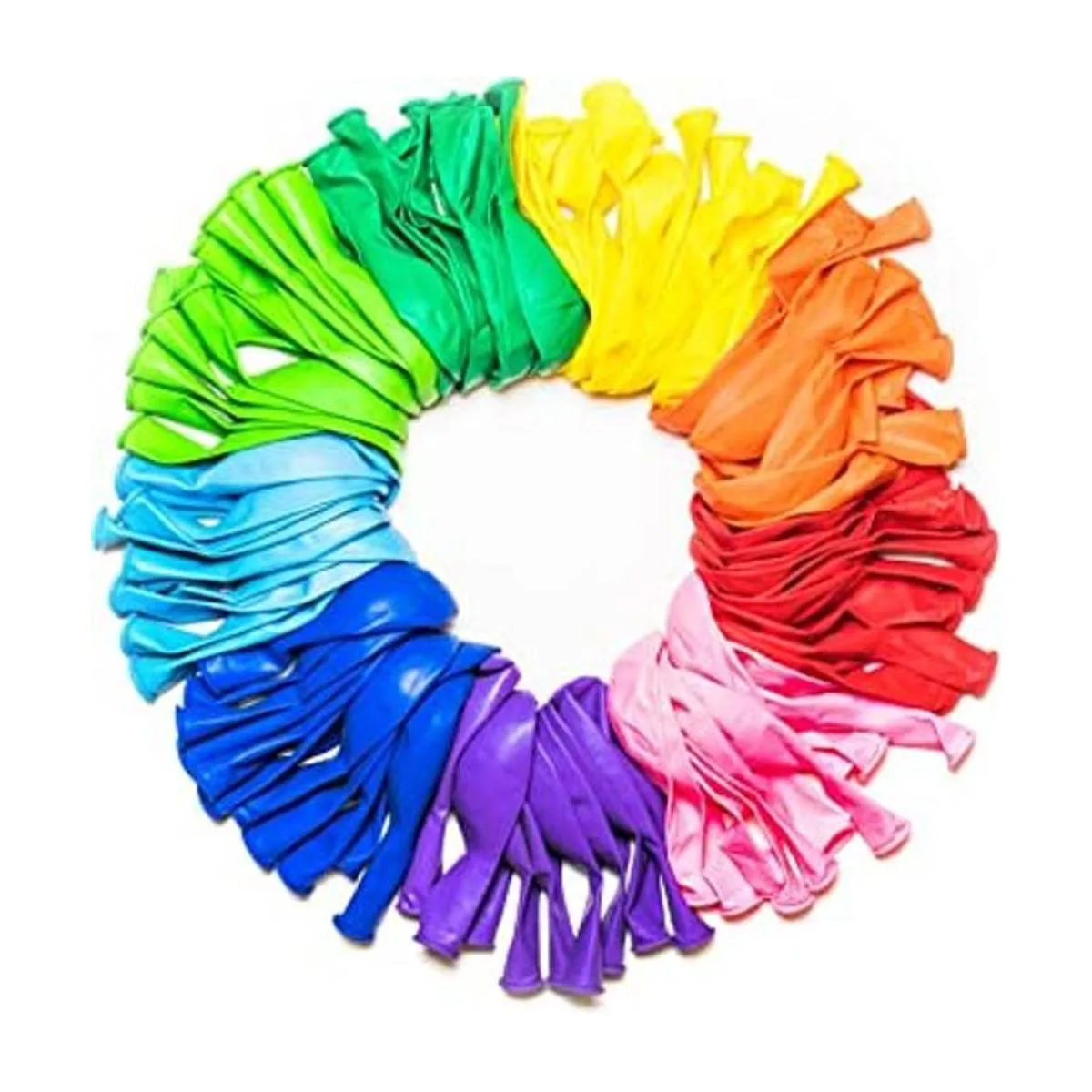 Contiene 100 globos de colores surtidos. Los globos de látex han sido rigurosamente probados y seleccionados manualmente.
