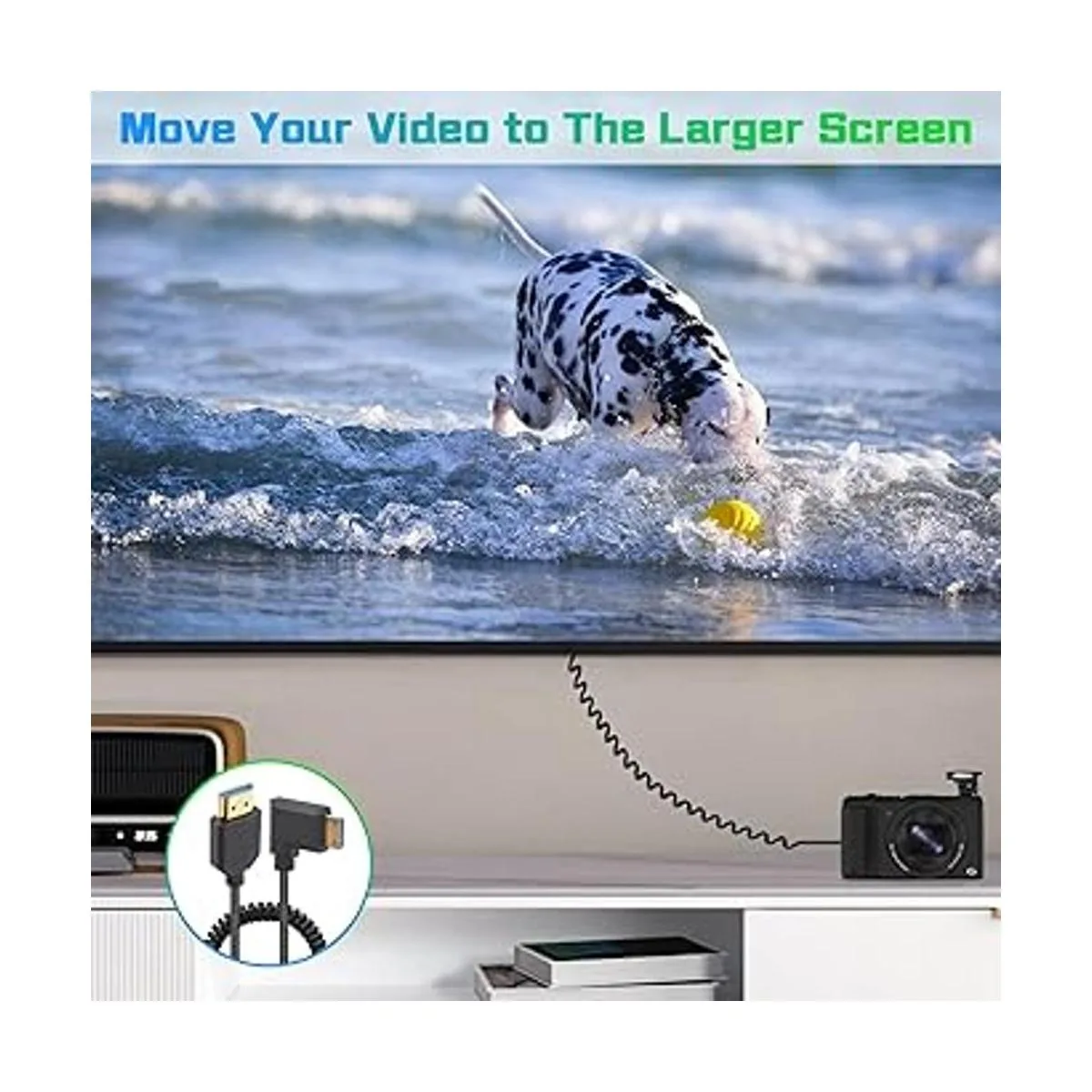 Duttek Cable en espiral mini HDMI a HDMI de 8 K, versión 2.1, 48 Gbps ultra delgado en ángulo recto, mini HDMI macho a HDMI macho, compatible con transmisión bidireccional para proyector, monitor, videocámara de 4 pies 3.9 ft