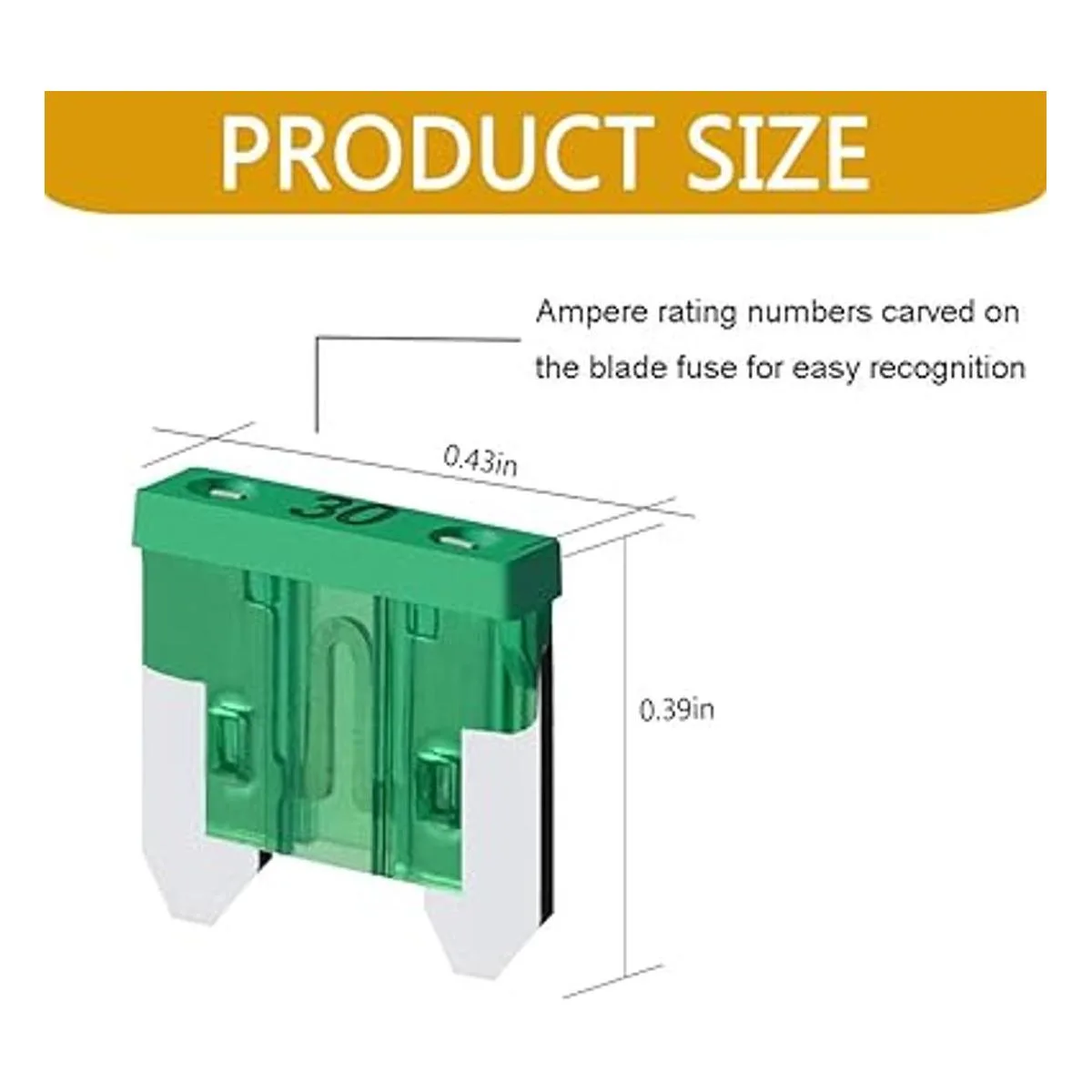 Package Include : 100 PCs Standard Mini Low Profile Mini Blade Fuse Assortment with a fuse puller.