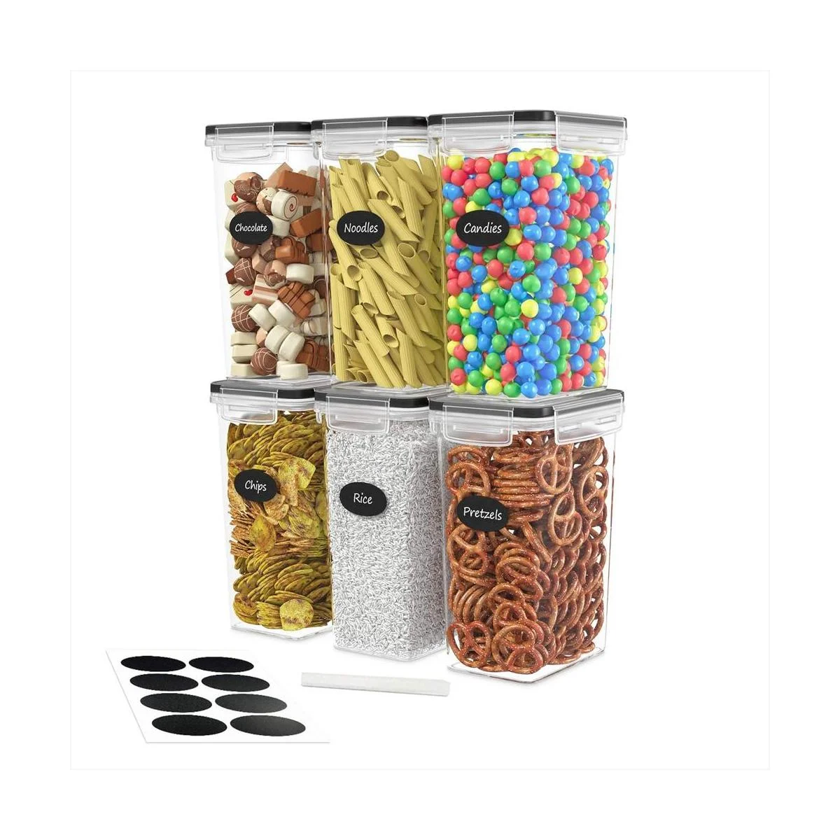 DWLLZA KITCHEN Juego de 6 recipientes herméticos para almacenamiento de alimentos, de plástico, sin BPA, aptos para lavavajillas, incluye 8 etiquetas y marcador, mantiene la comida fresca y seca