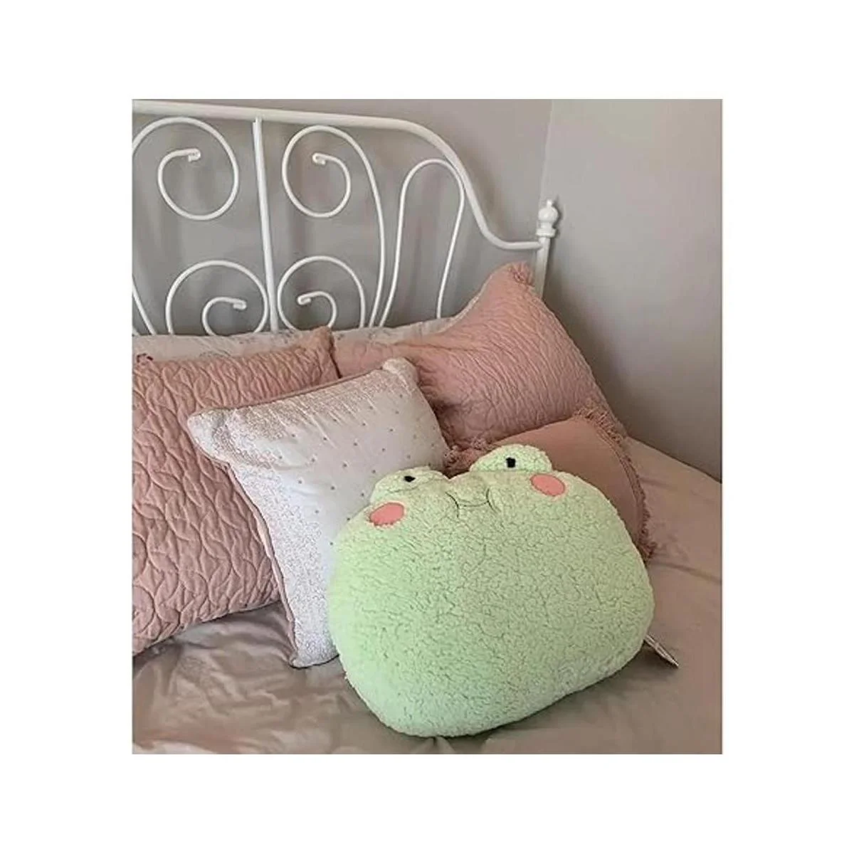 DXDE4U Almohada de felpa, adorable animal de peluche de rana, decoración del hogar, almohada para abrazar, regalo de cumpleaños, Navidad, viaje, para adultos, niñas y niños 15 x 14 pulgadas