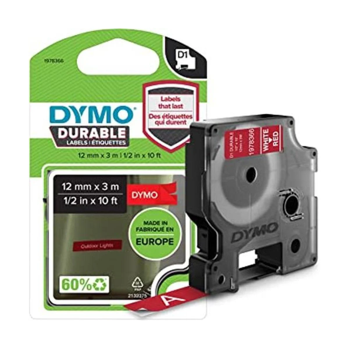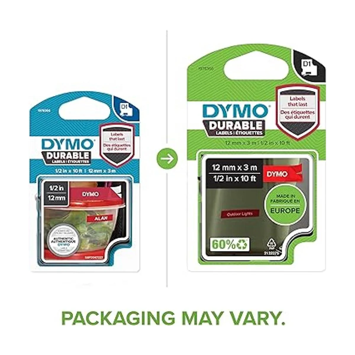 DYMO D1 Cinta de etiquetado duradera para etiquetadoras LabelManager, impresión blanca sobre cinta roja, 12 W x 10 L, 1 cartucho 1978366, DYMO Authentic