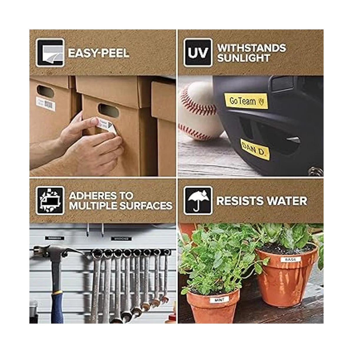 Cinta de etiquetas para interior/exterior que soporta la luz UV, el calor, la humedad, los limpiadores del hogar y las condiciones de congelación.