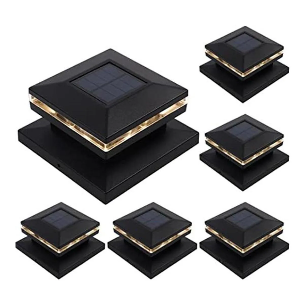 Dynaming Paquete de 6 luces solares para postes, luces decorativas para exteriores, tapas de carcasa negra alimentadas por energía solar, iluminación LED SMD blanca cálida de alto brillo para valla de terraza, patio, apto para postes de madera de 4 x 4, 5 x 5 o 6 x 6 pulgadas
