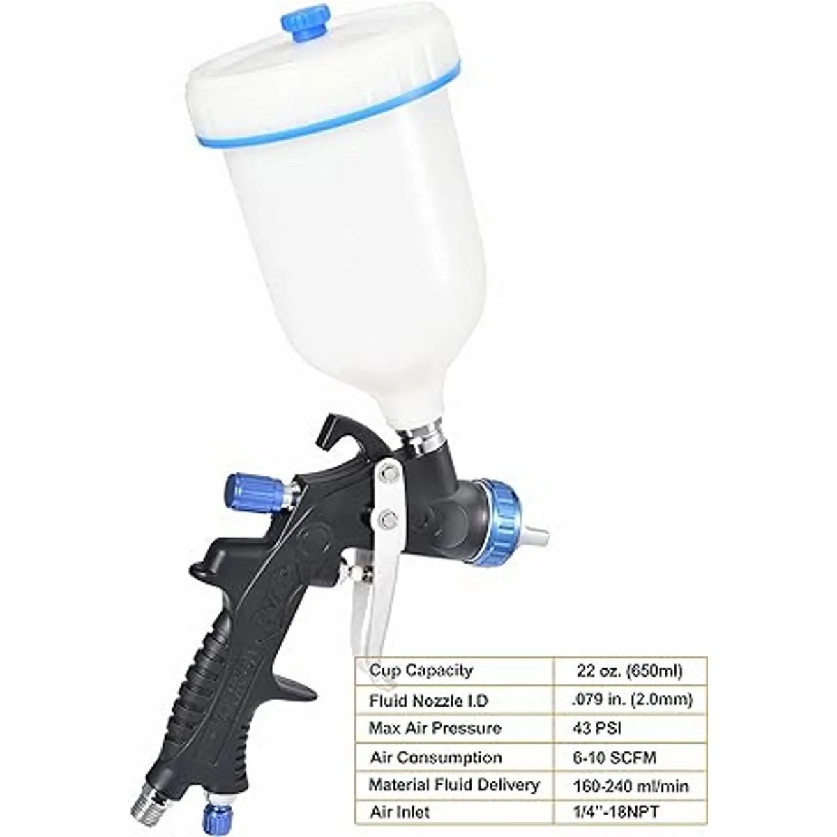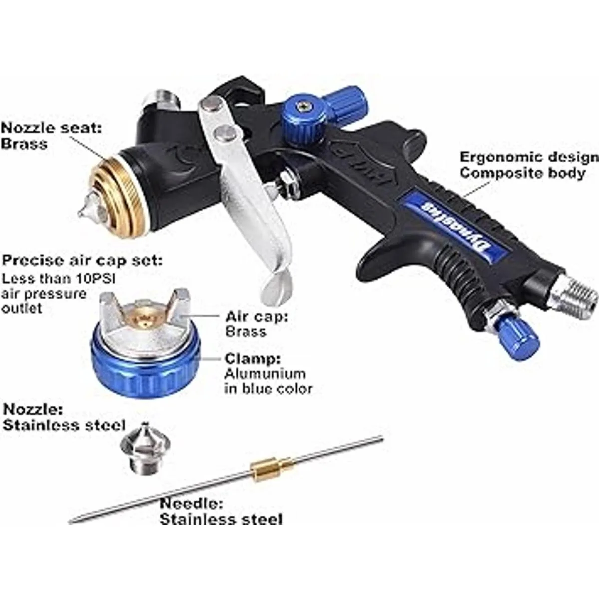 Dynastus Pulverizador profesional de pintura con detalle de pistola de aire HVLP compuesta de 20 onzas, boquilla de 0.079 in, con kits de regulador de aire