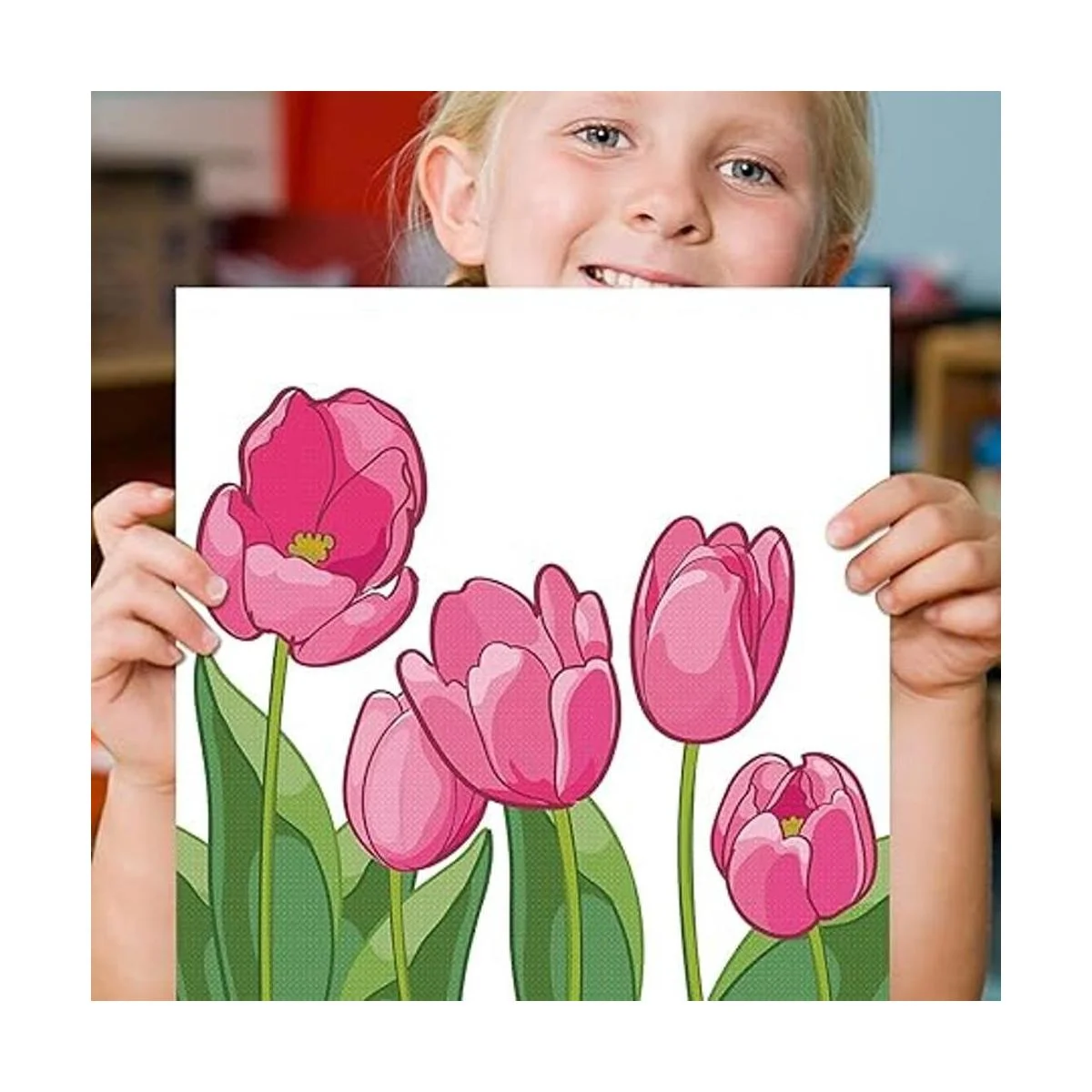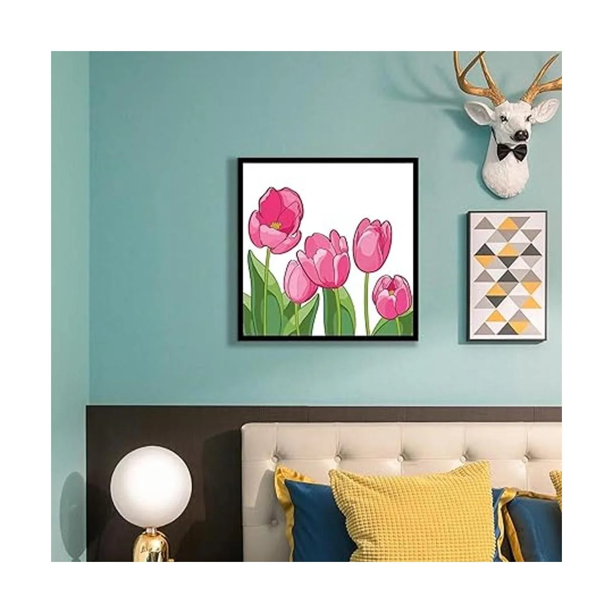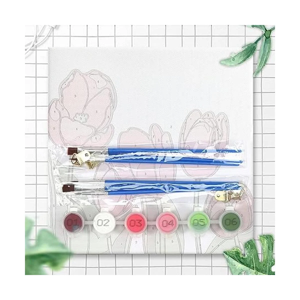 Dynippy Pintura al óleo enmarcada por números para niños y adultos principiantes Lienzo colorido acrílico al óleo fácil kit de pintura para adultos y niños 8 x 8 pulgadas Flor rosa
