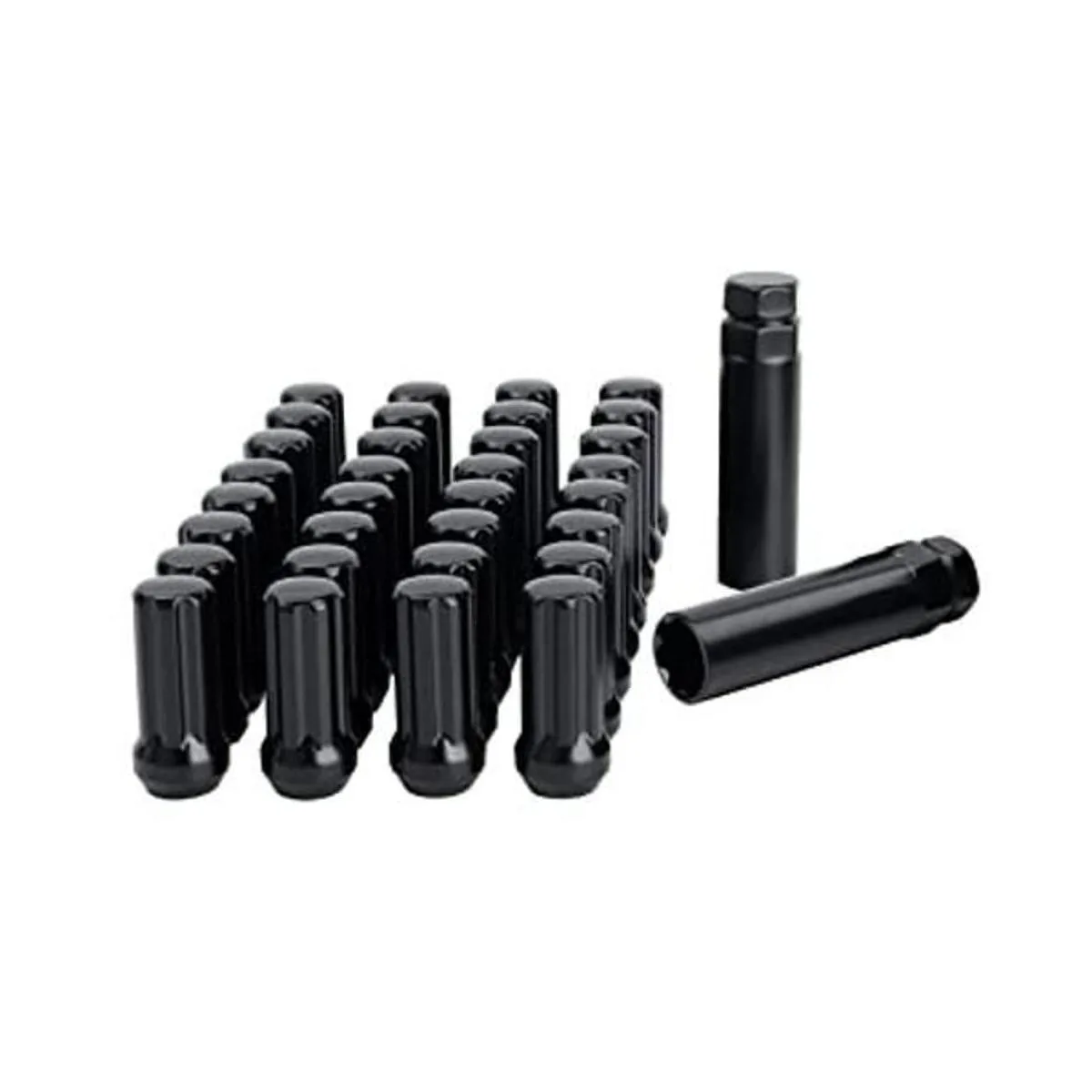 DYNOFIT Tuercas de rueda 91618, 32 tuercas negras de 916 pulgadas x 18, asiento de bulto cónicocónico, tuercas de extremo cerrado, 2 pulgadas de alto con 2 llaves de enchufe para Dodge 19942011 Ram 2500 3500