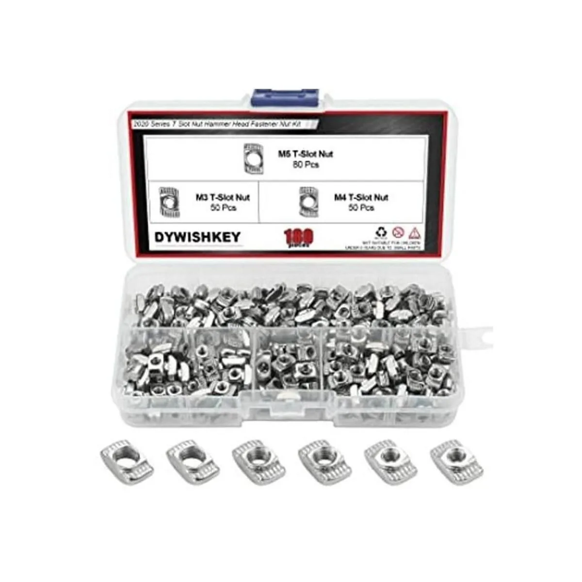 DYWISHKEY 180 piezas 2020 serie T tuercas M3/M4/M5 T ranura tuerca martillo cabeza sujetador tuerca surtido kit para perfil de aluminio