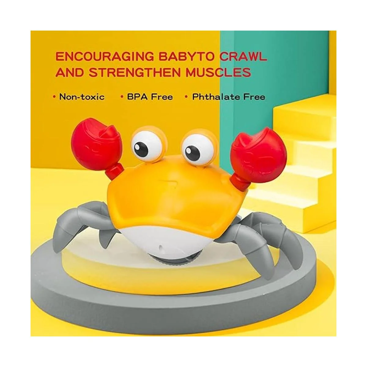 DZHJKIO Juguete de bebé de cangrejo gateante con música y luz LED para niños, juguete interactivo de desarrollo de aprendizaje con evita automáticamente obstáculos, batería recargable integrada amarillo