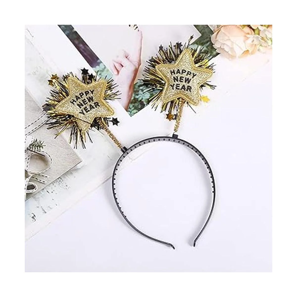 Dzrige Diadema de feliz año nuevo con adornos de estrellas y oropel dorado, diadema para decoración de Año Nuevo, cumpleaños, carnaval, fiesta