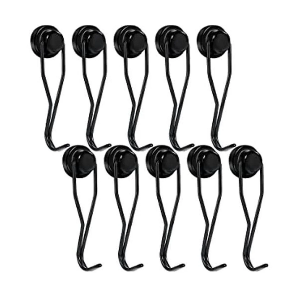 E BAVITE Ganchos magnéticos giratorios color negro, 30 libras, ganchos magnéticos de neodimio fuertes con revestimiento epoxi negro para refrigerador, crucero, herramientas de parrilla de barbacoa, 2.36 pulgadas de largo, paquete de 10
