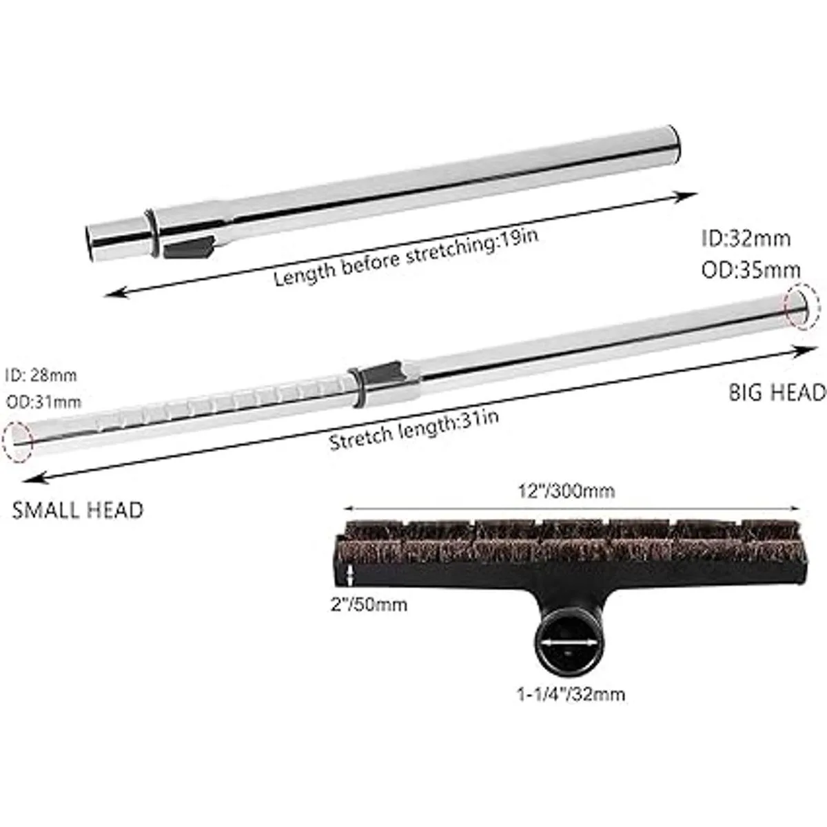 1. Cepillo de piso de vacío de 11/4 pulgadas de diámetro interior y tubo de extensión de 11/4 pulgadas que se adapta a la mayoría de aspiradoras que aceptan mangueras de vacío de 11/4 pulgadas como Hoover, Eureka, Royal, Dirt Devil, Electrolux, Panasonic, Shop Vac, Oreck, etc.
