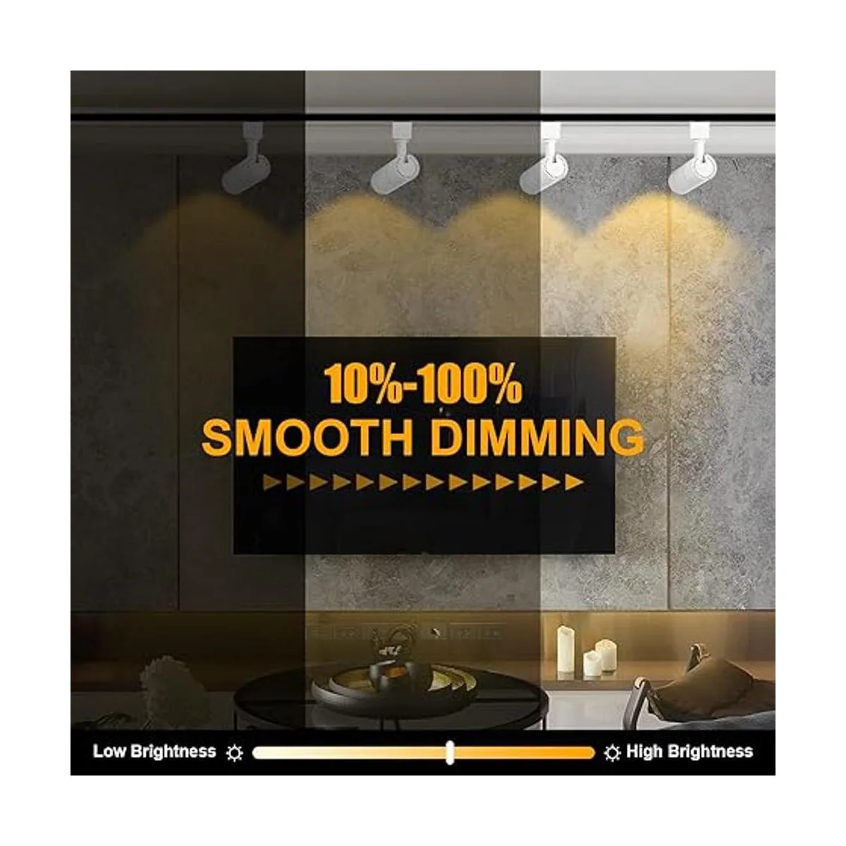 Regulable: se atenúa suavemente del 10 al 100, 1200 lm por lámpara de pista LED, luz LED H de 12 W de bajo consumo de 3000 K equivalente a halógeno de 100 W, regulable con regulador. Compatible con sistema de pista de circuito tipo H de 3 cables 1 y circuito de luz Halo el riel de pista y el regulador no están incluidos en el paquete