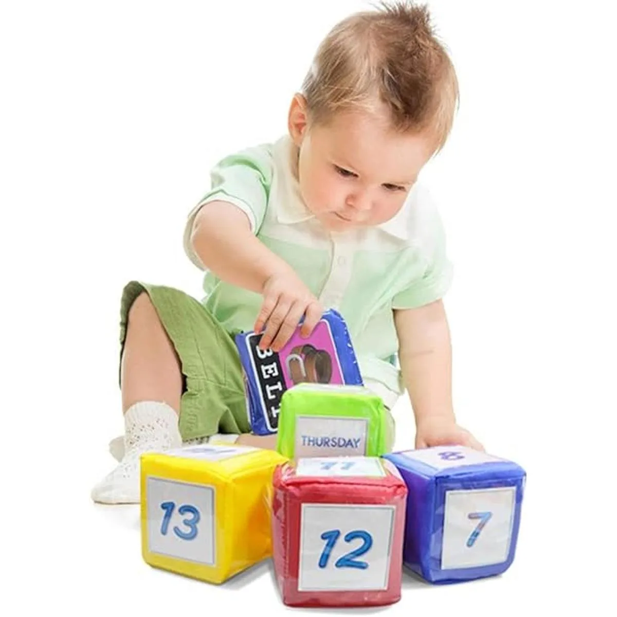 Bolsillo para fotos: cada dado de juego de 3.7 in cuenta con un bolsillo de vinilo transparente en cada lado. Personalízalos con fotos de familiares, amigos o mascotas para mejorar la experiencia de aprendizaje de tu bebé