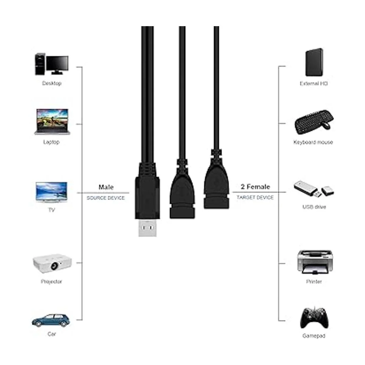 Eanetf Cable divisor USB 3.0 hembra a macho 2 unidades, USB 3.0 hembra a doble USB macho de 1 a 2, convertidor de carga de datos de sincronización y cable de extensión para PCcochelaptopdisco Utarjeta de reddisco duro, etc.