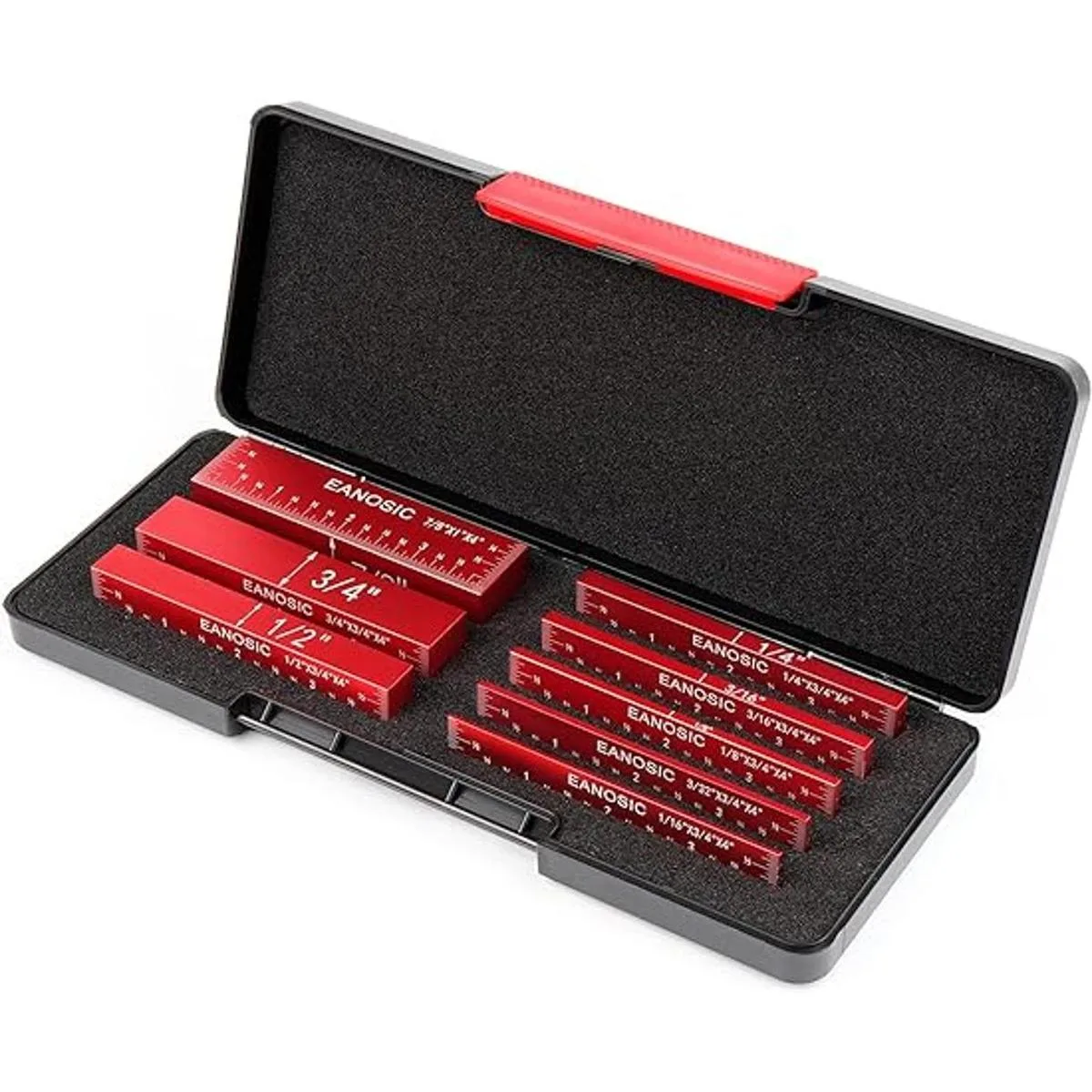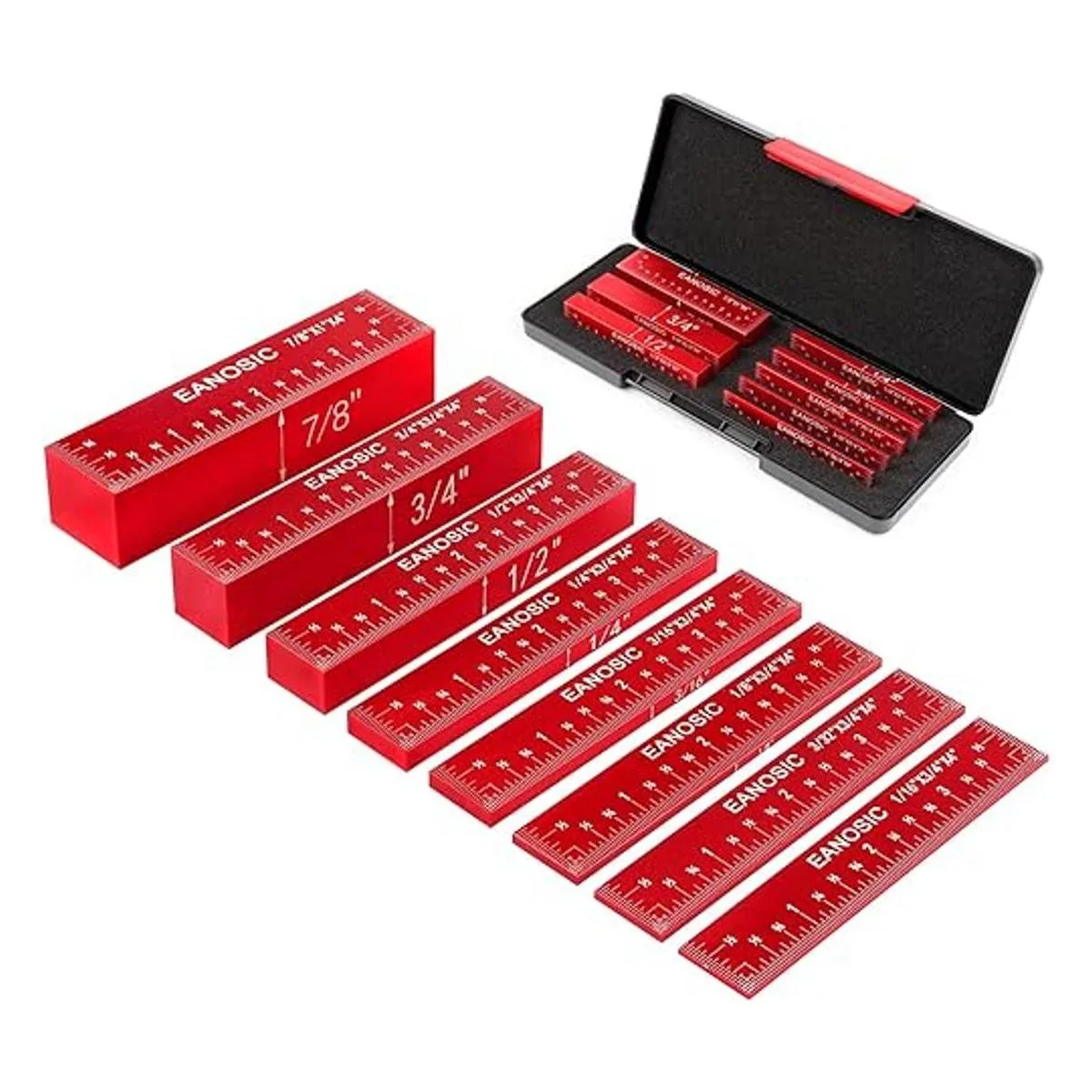 Los bloques de calibre son de 4 pulgadas extra largos. Tamaños de bloque de calibre preciso: 1/16, 3/32, 1/8, 3/16, 1/4, 1/2, 3/4, 1×8/7×4