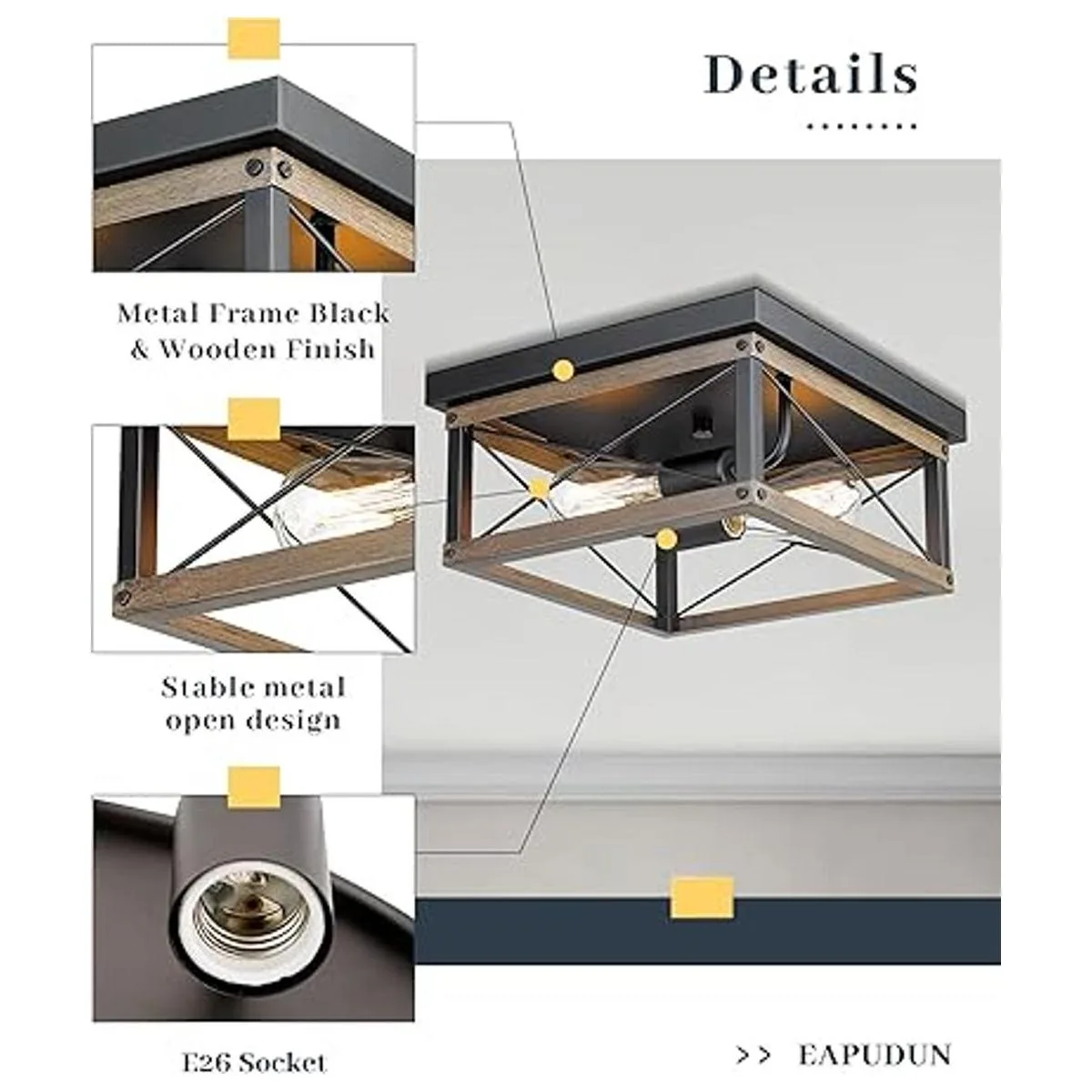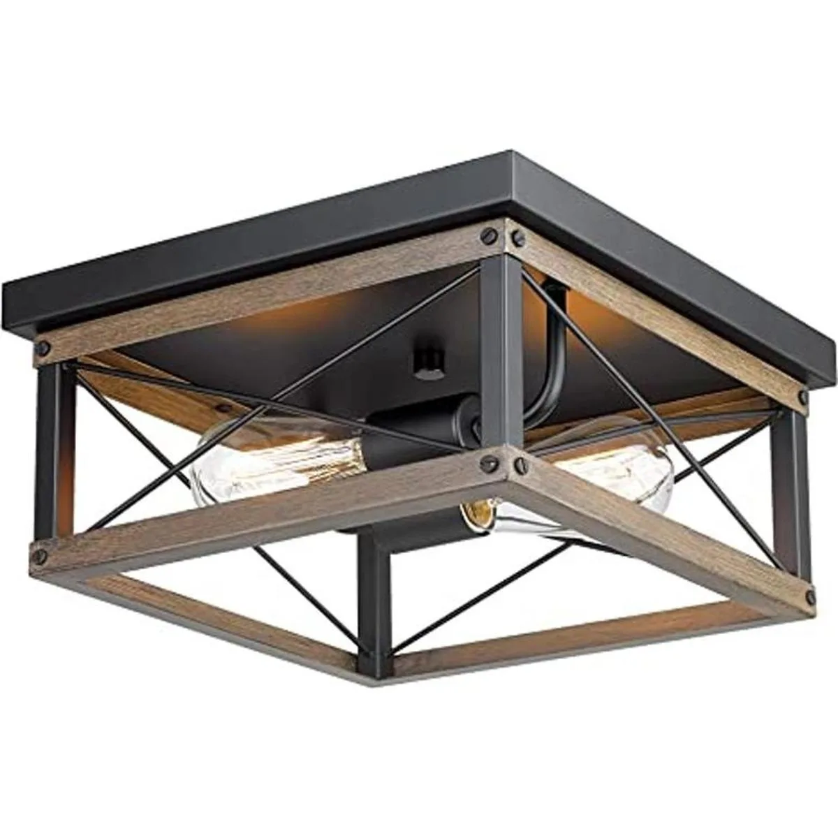 EAPUDUN FMA1384FBDT Lámpara de techo empotrada de 12 pulgadas con 2 luces en metal negro y acabado de madera para sala de estar, cocina, comedor y vestíbulo
