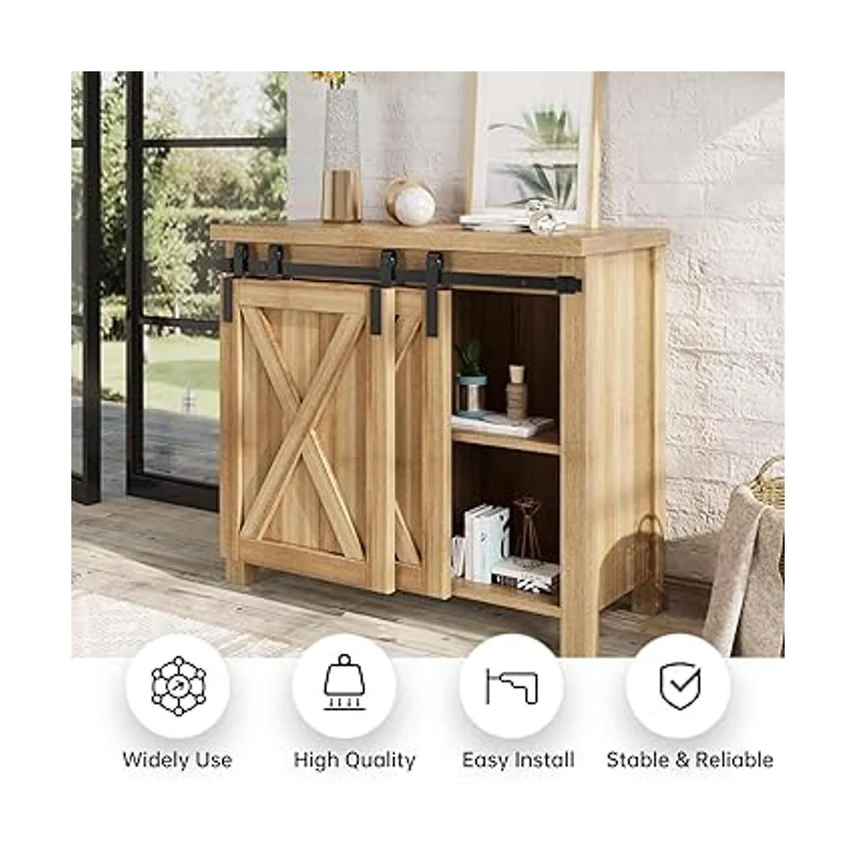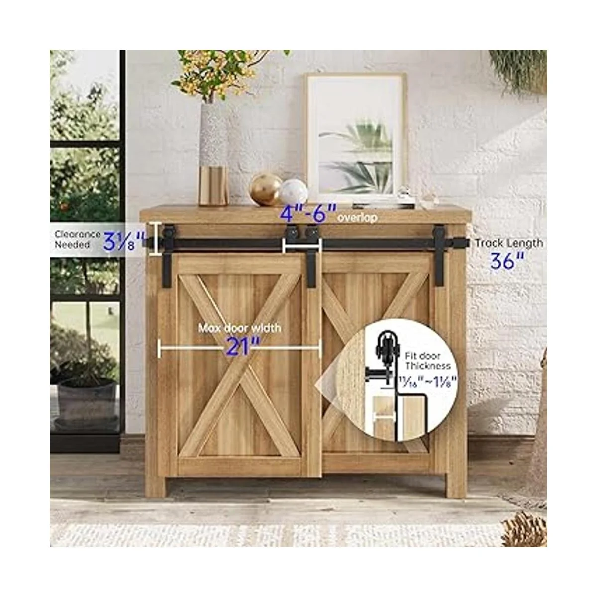 EaseLife Kit de rieles de doble puerta corrediza de granero de 3 pies, fácil de instalar, desliza suavemente silenciosamente, se aplica para ventana de almacenamiento y otros blindajes sin gabinete