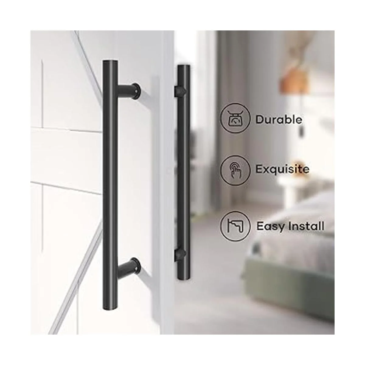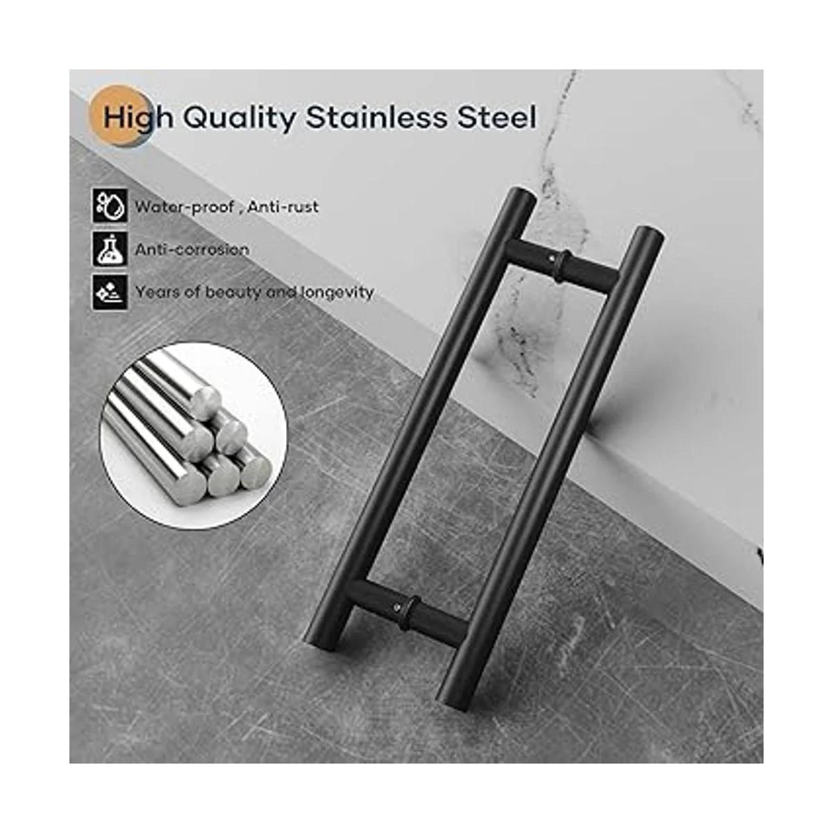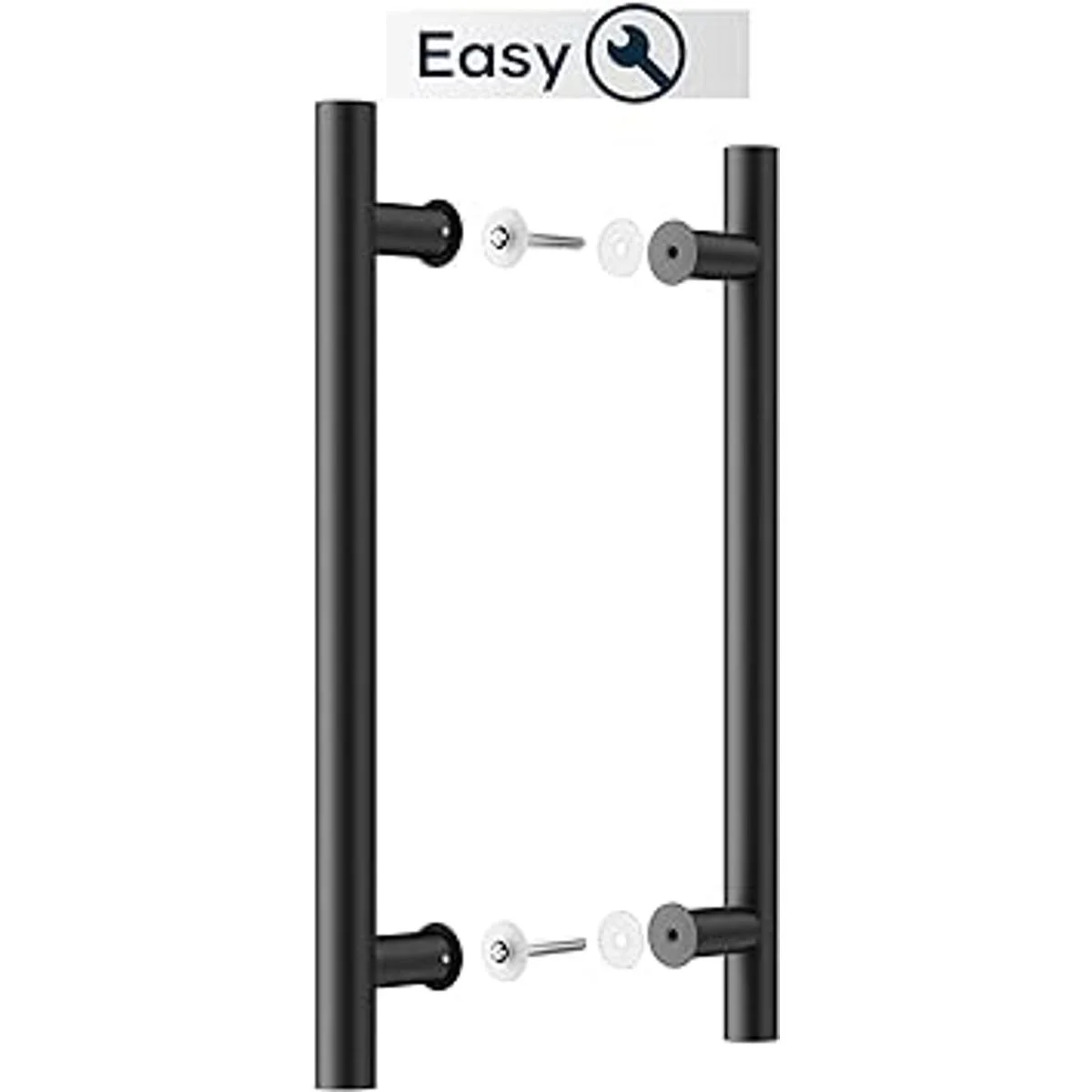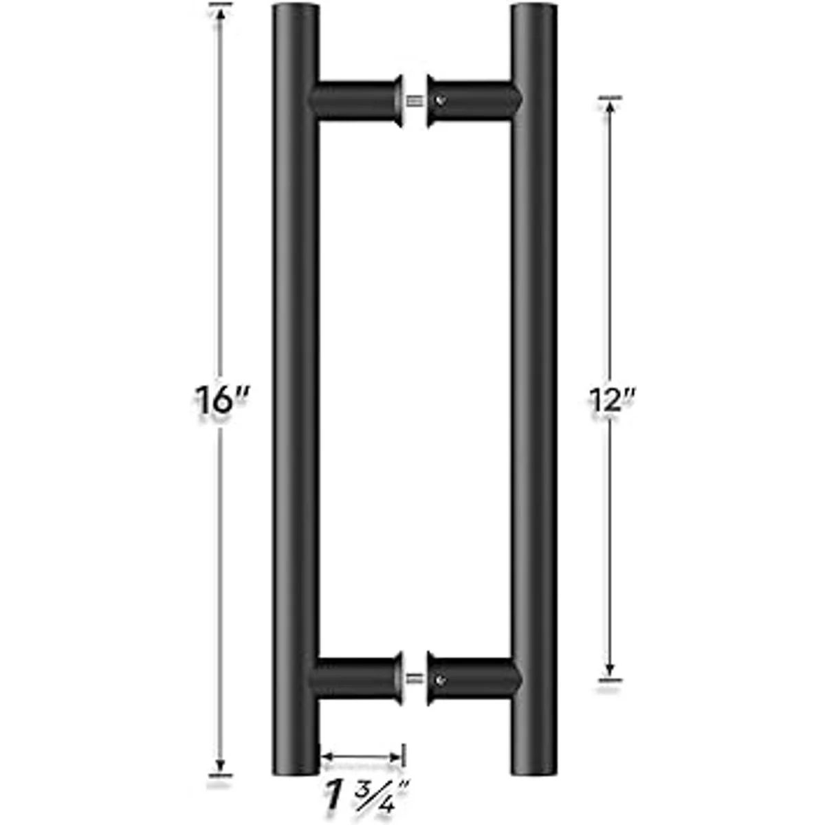 EaseLife Manija de puerta de doble cara de 16 pulgadas, negro mate, acero inoxidable, manija de puerta corrediza en forma de H, apta para puerta de vidrio de madera, paquete de 2