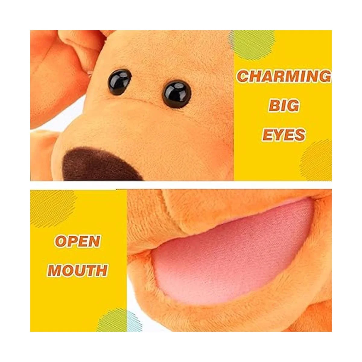 Easfan Marioneta de mano de perro de peluche con boca movible, juguete de animal para juegos de rol, narración de historias, regalos de enseñanza preescolar, para niños, niñas, cumpleaños, Navidad, marrón, 10 pulgadas