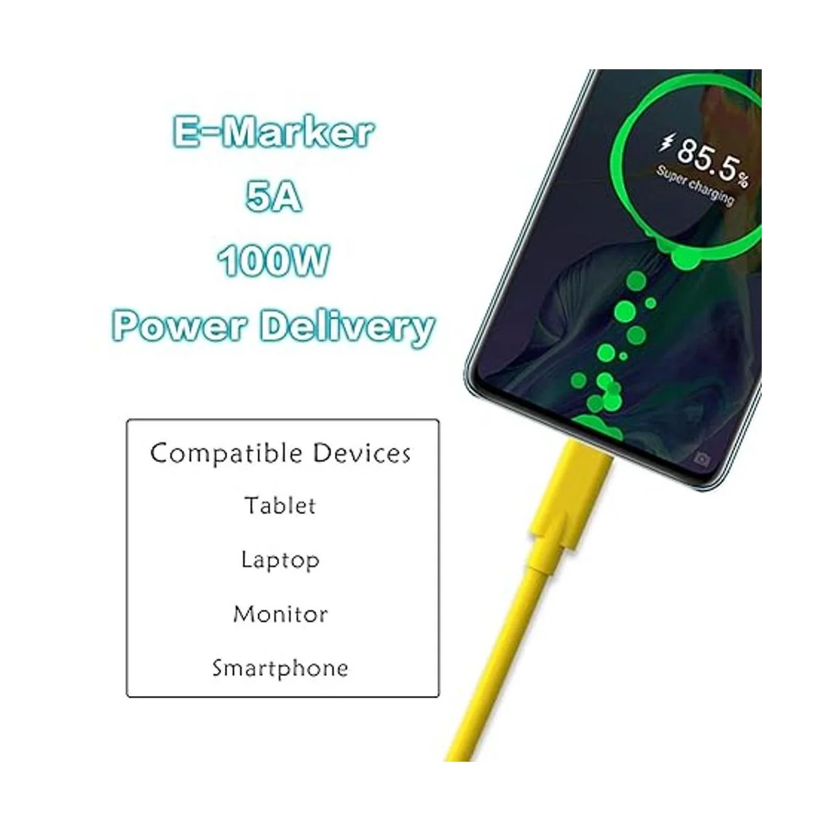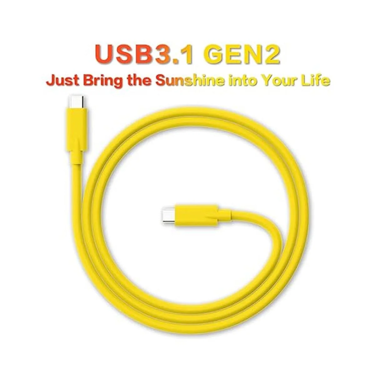 Easonunion Cable USB C a USB C 3.1 Gen 2 con 100 W PD, transferencia de datos de 10 Gbps 5A de carga rápida tipo C a C compatible con smartphone, tablet, laptop, amarillo, 3.3 pies