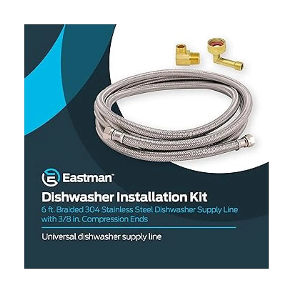 EASTMAN 41045 Kit de instalación de lavavajillas, compresión, MIP de 38 pulgadas, codo FHT de 34 pulgadas, conectores de acero inoxidable trenzados de 6 pies, 6 pies