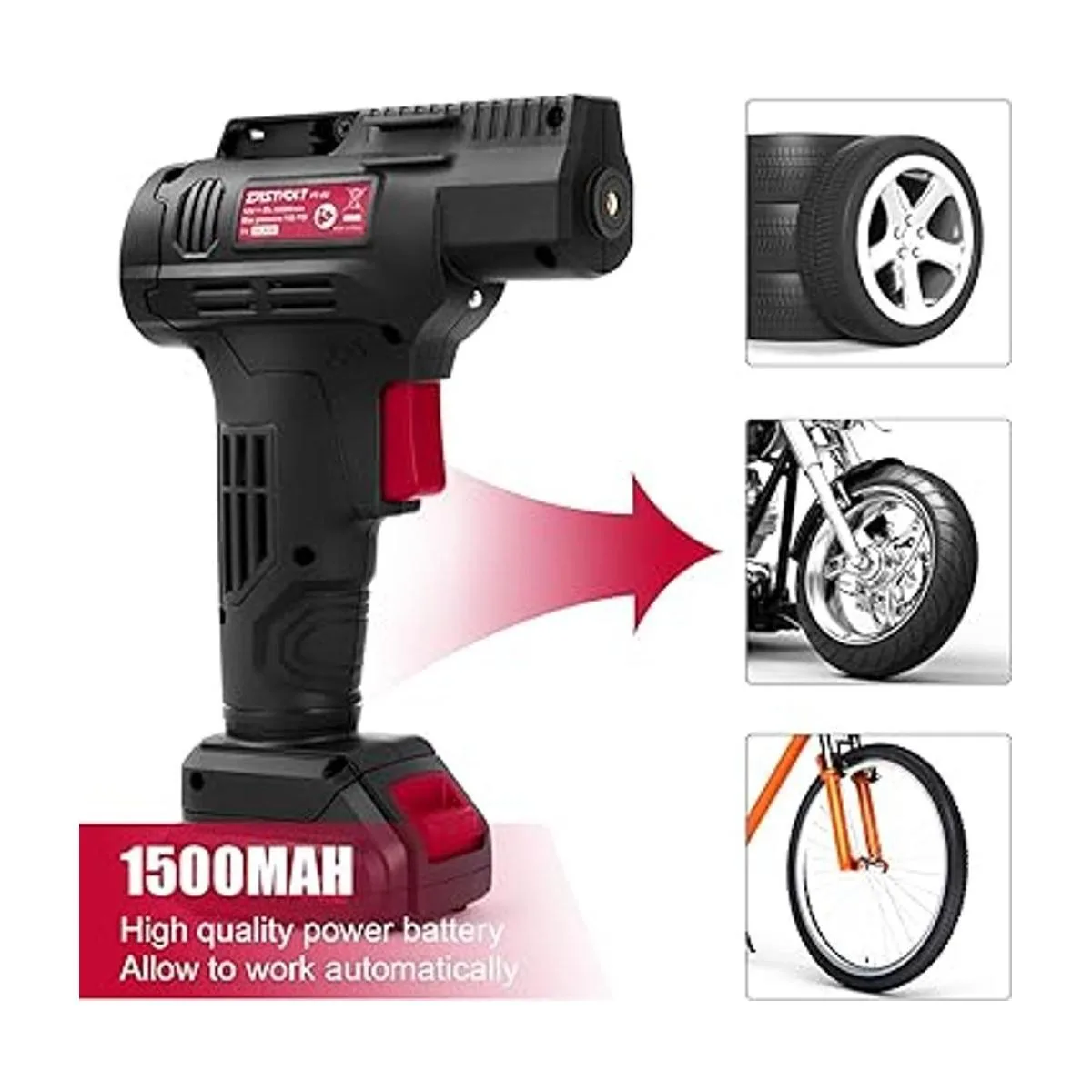 El compresor de aire recargable de 1500 mAh se puede encender rápidamente. Puede inflar coches, bicicletas, motocicletas, pelotas y juguetes inflables muy rápidamente.