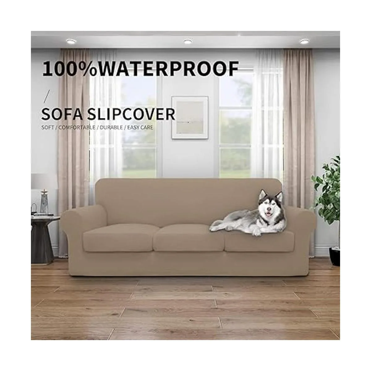 Tela 100 impermeable: la tela superior se procesa con tratamiento impermeable, y la parte trasera está recubierta con capa impermeable. Doble función impermeable que puede garantizar un efecto 100 impermeable y a prueba de fugas. 15 elastano 85 poliéster, parte trasera recubierta con película de polietileno. Seguro y ecológico. La funda de sofá es una gran opción para hogares con niños y mascotas.