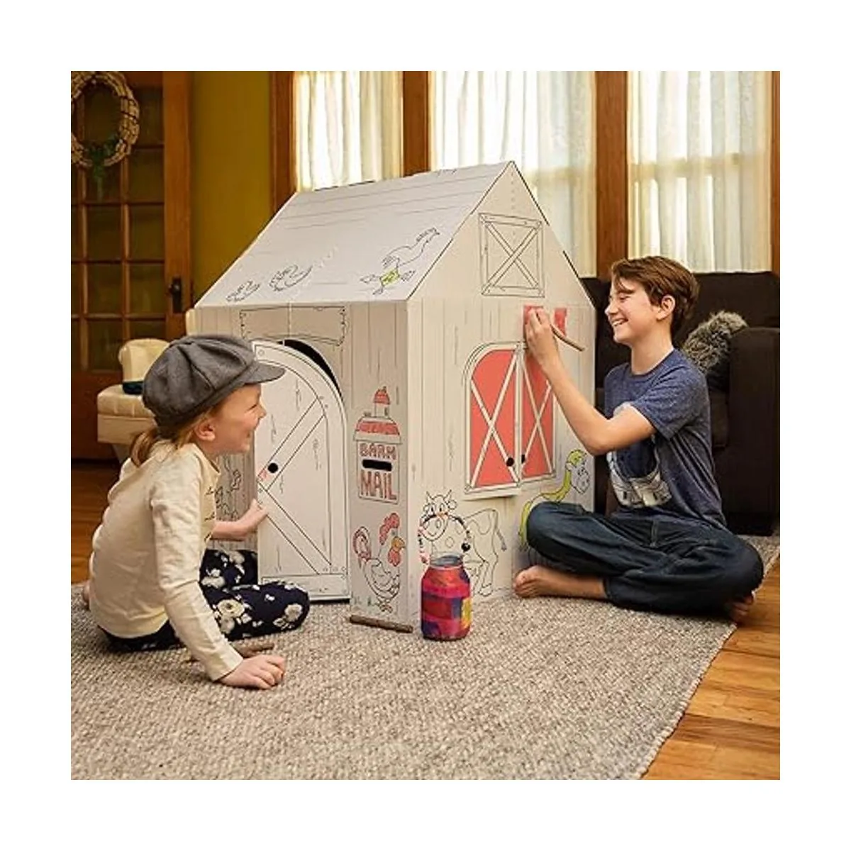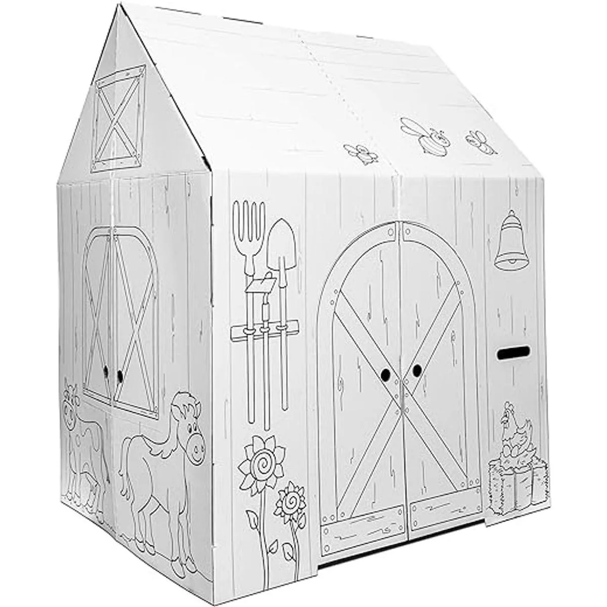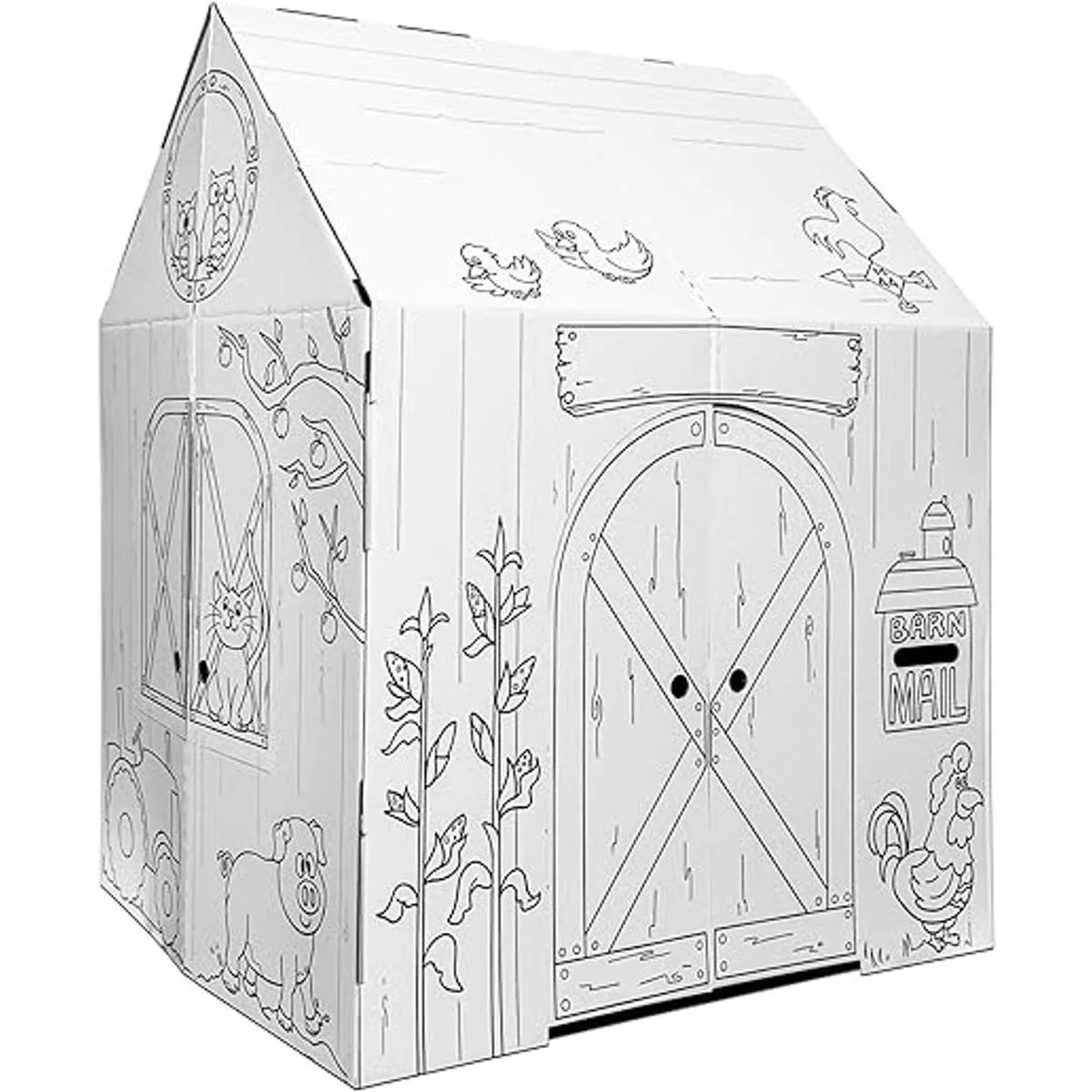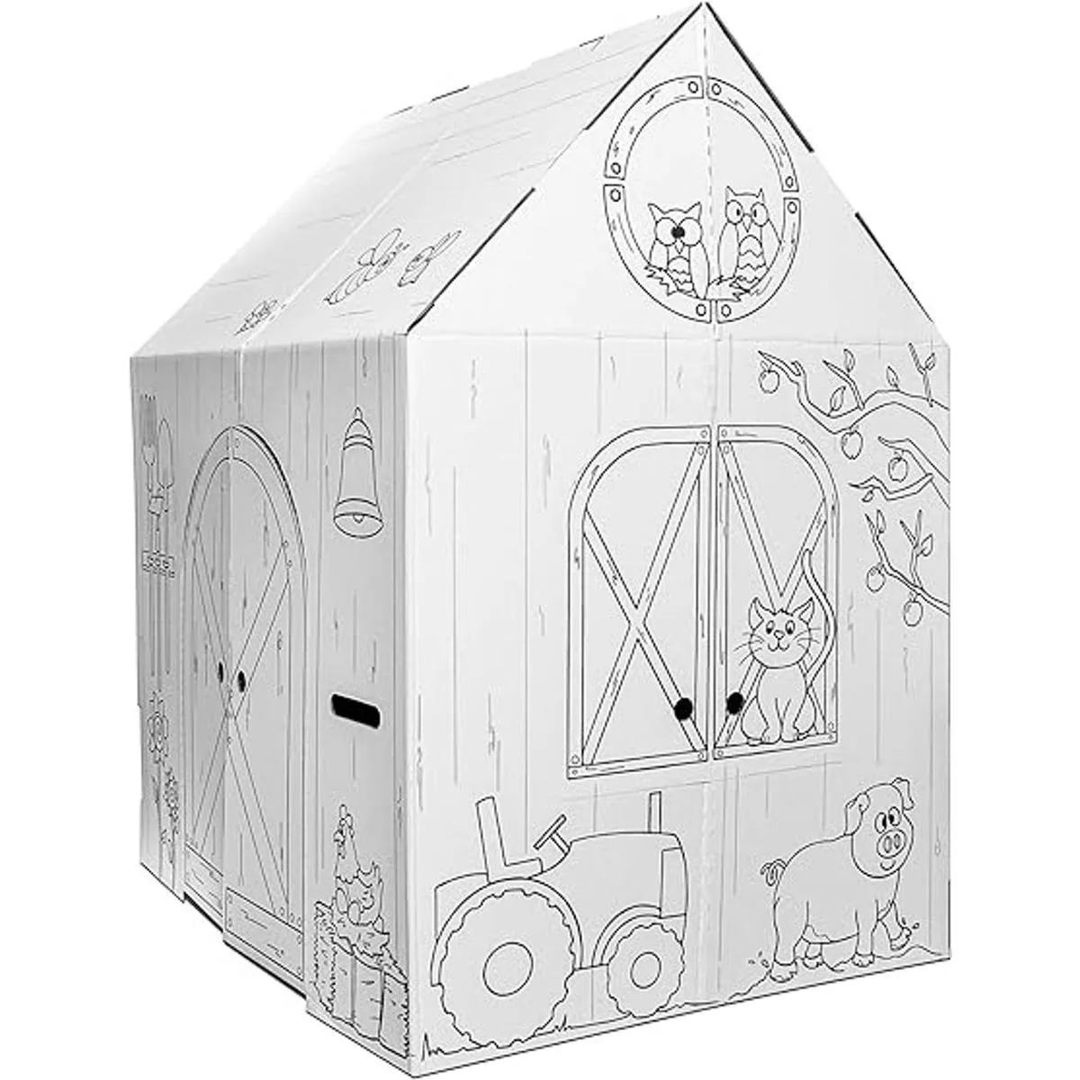 Easy Playhouse Granero Arte y manualidades para niños para diversión en interiores y exteriores, color de animales de granja favoritos decora y personaliza el fuerte de cartón, 32 x 26.5 x 40.5 pulgadas, fabricado en Estados Unidos, a partir de 3 años exclusivo de Amazon