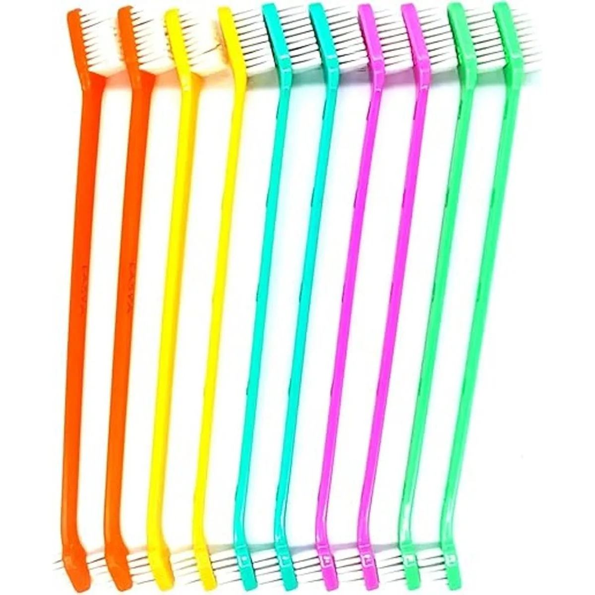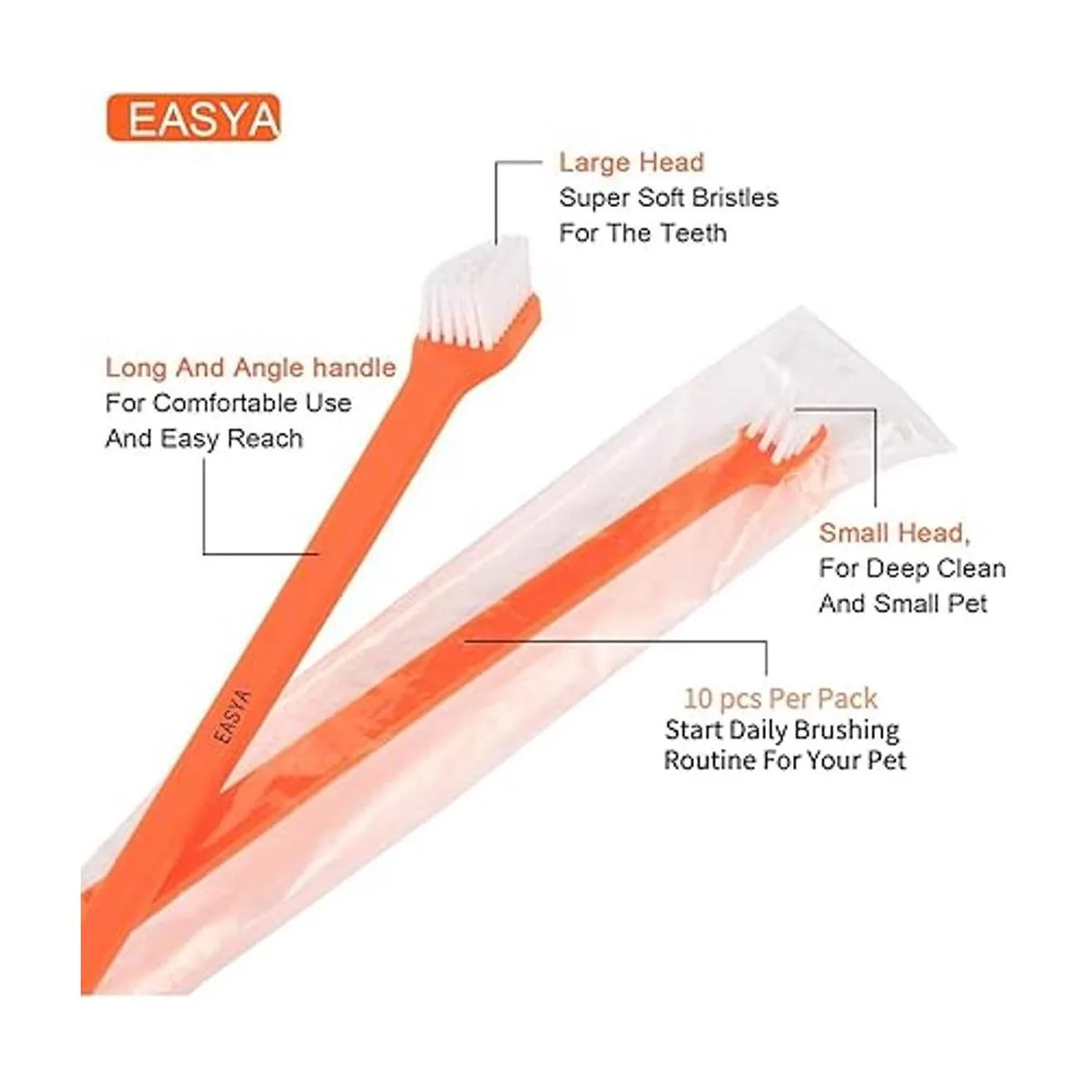 EASYA Cepillo de dientes de doble cabeza para perros pequeñoscerdas suaves, cepillo de dientes de mango largo para perros, limpieza de dientes a granel, cuidado dental y bucal MIXED10